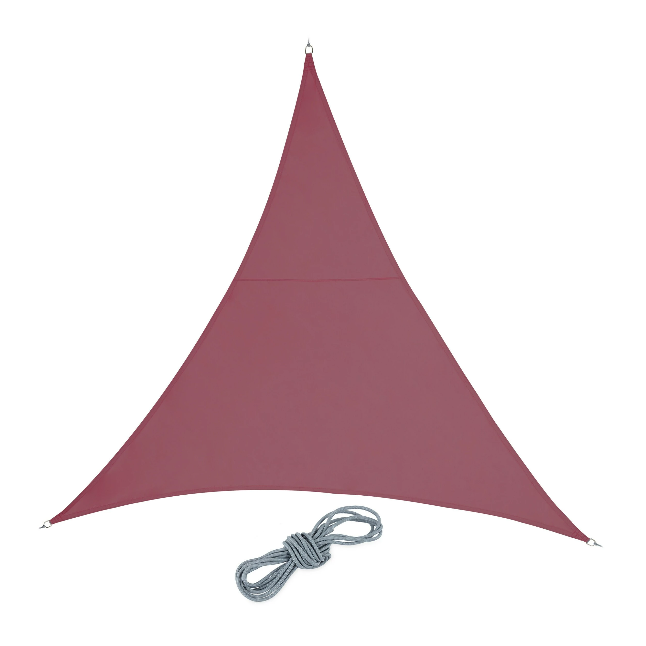 Das dreieckige Balkonsegel aus robustem PES-Gewebe spendet nicht nur großzügig Schatten, es bietet zugleich einen wirksamen UV-Schutz. Das bordeauxrote Segel ist überdies witterungsbeständig, reißfest und dank konkaver Form straff aufspannbar. Nutzen Sie das Sonnentuch als Sichtschutzsegel auf dem Balkon oder am Pool sowie als Schattenspender über Veranda und Terrasse oder dem Sandkasten. Das robuste Gartensegel wird mit den mitgelieferten Spannseilen an den 3 Haken befestigt.