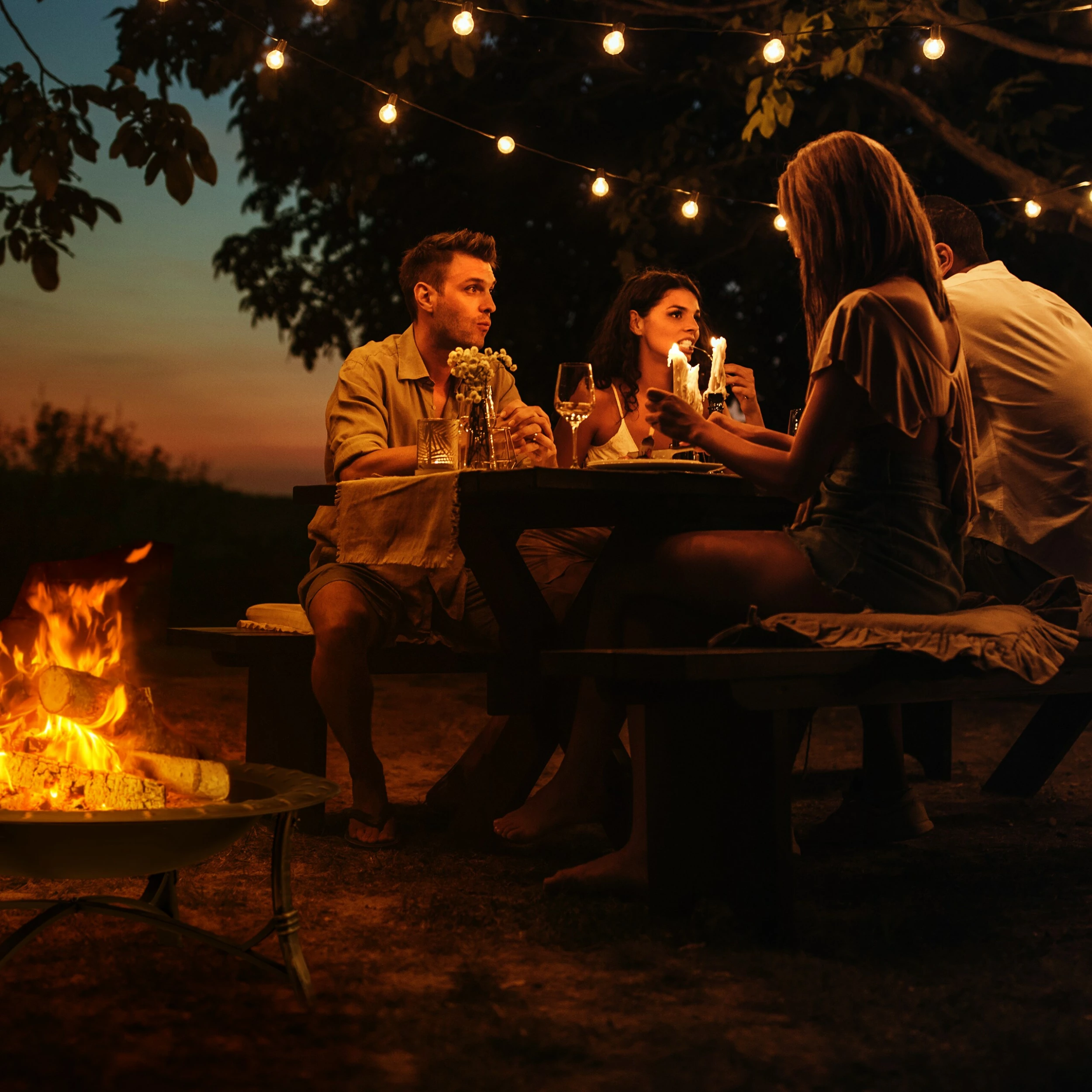 Ein Lagerfeuer im Garten, Marshmallows und Stockbrot rösten und das Knistern der Flammen genießen – mit dieser XXL Feuerschale holen Sie sich den Traum vom eigenen Lagerfeuer nach Hause. Die hohen Füße bewahren dabei den Untergrund vor allzu großer Hitze. Der Funkenschutz schränkt die Höhe der Flammen sowie den Funkenflug ein und schützt somit die Umgebung. Für ein loderndes Feuer ist ein Schürhaken mit dabei.