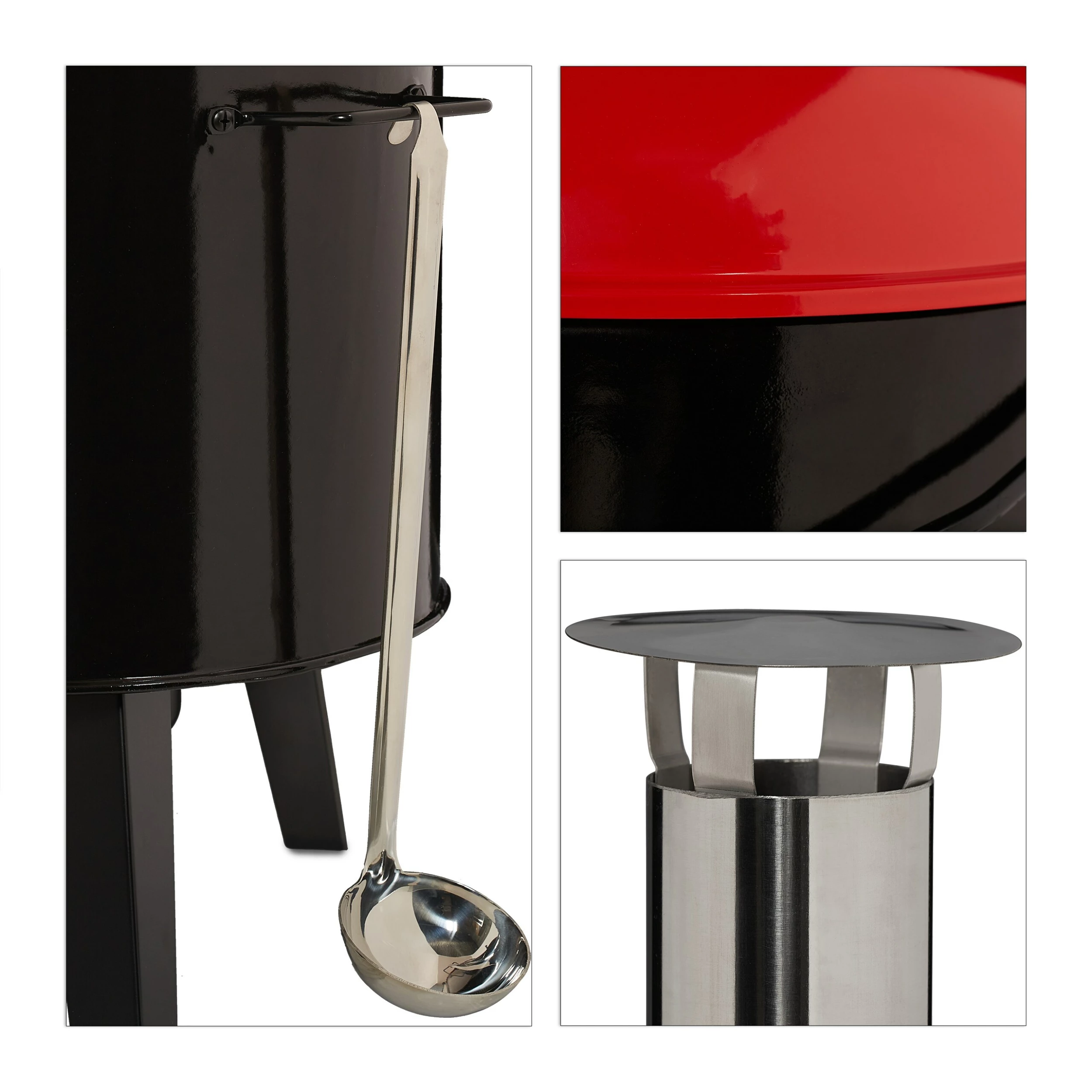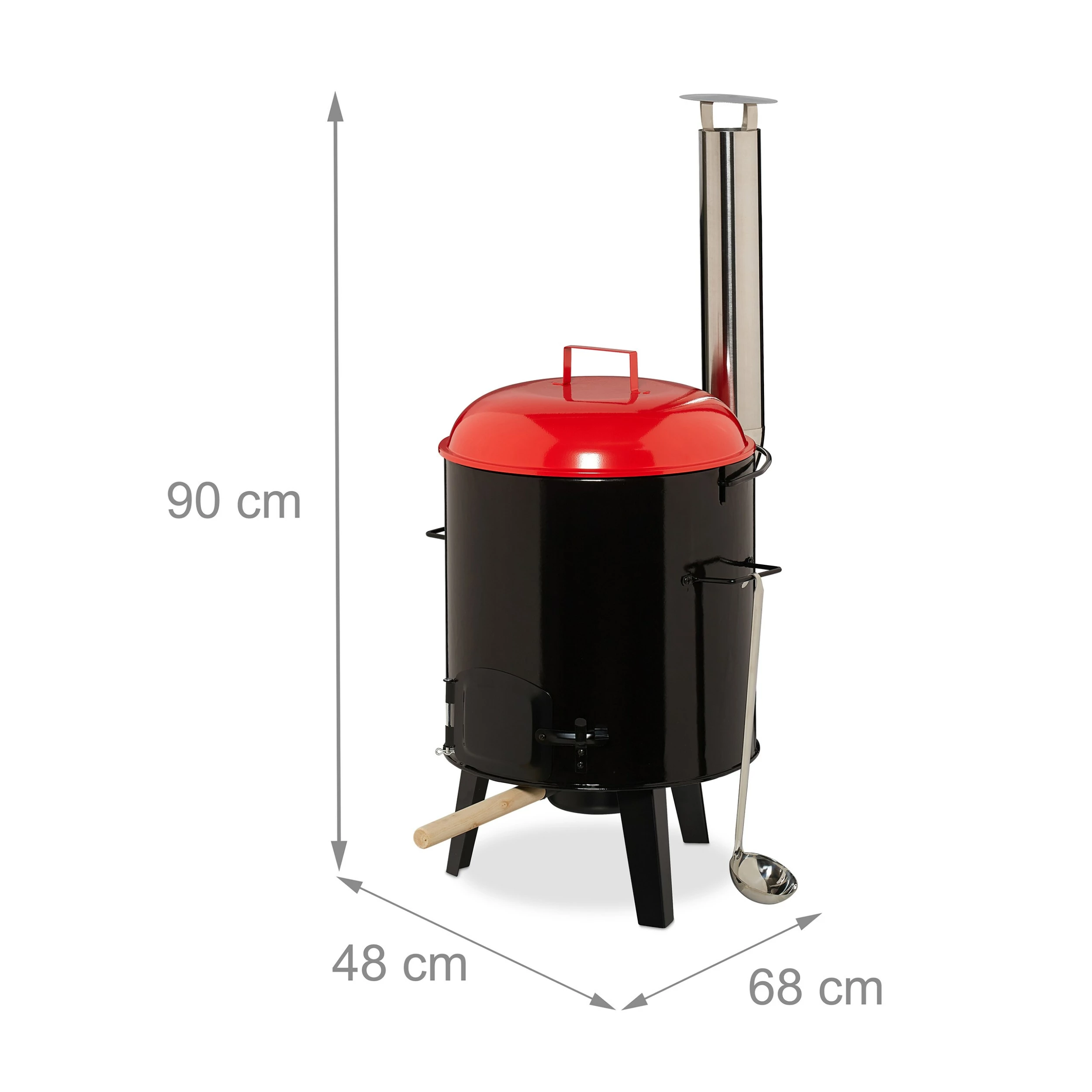Servieren Sie bei der nächsten Gartenparty deftige Erbsensuppe, leckeres Chili con Carne, ungarischen Gulasch oder wärmenden Punsch und Glühwein direkt aus dem Kochkessel. Das emaillierte Metall ist dabei besonders robust und langlebig und lässt sich leicht reinigen. Auch zum Grillen von Steaks oder Würstchen kann der Feuerkessel mit Grillfunktion verwendet werden. Befeuern Sie den Kesselofen mit Holz oder Kohle, der praktische Auffangbehälter sammelt die Asche und hält Ihre Terrasse sauber.