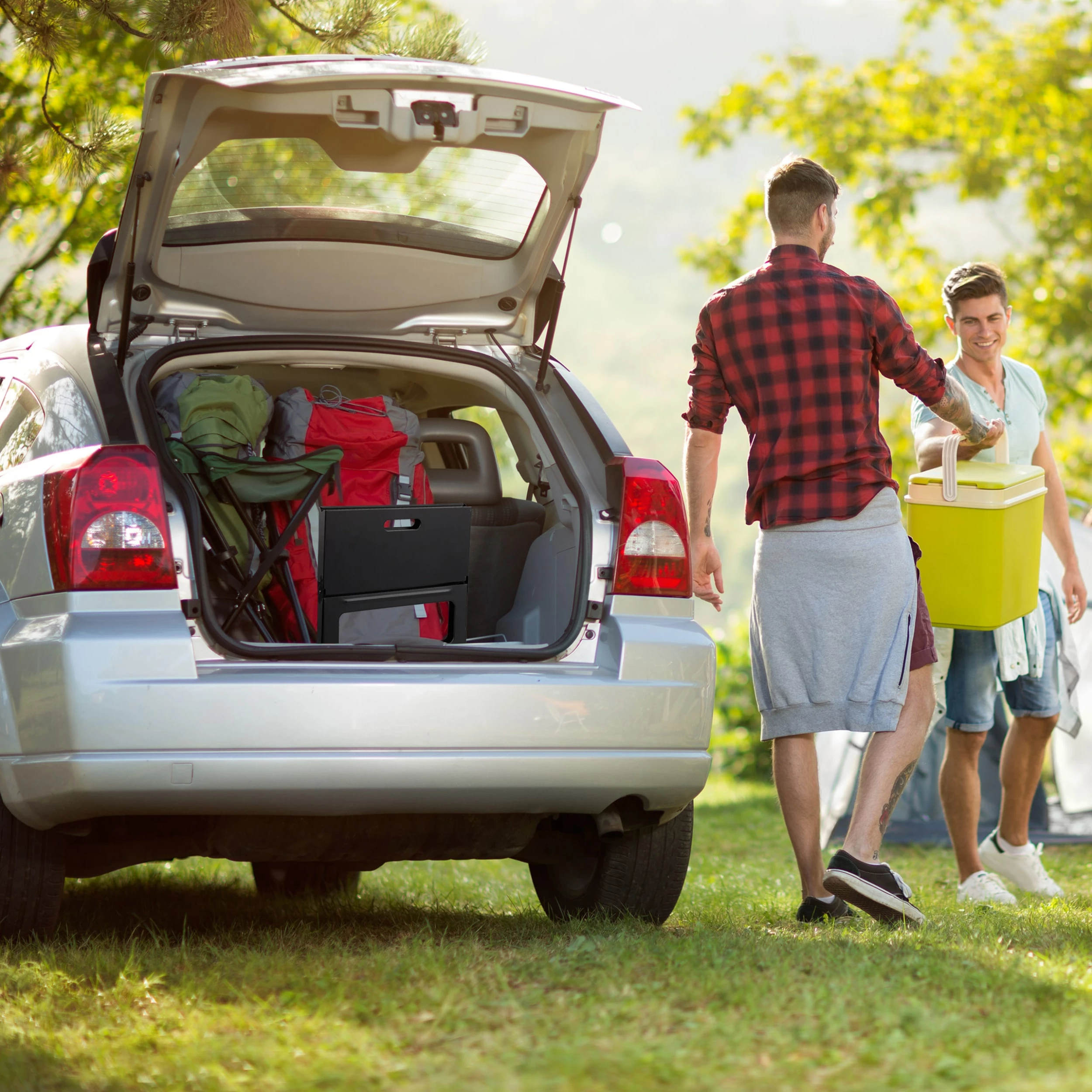 Mit dem Klappgrill sind auch spontane Ausflüge außerhalb des eigenen Gartens möglich. Ob am Picknick im Park nebenan oder beim Campingausflug – der faltbare Grill ist aufgrund seiner handlichen Form und seines geringen Gewichts ideal für den Transport geeignet. So lässt sich der kompakte Campinggrill gut verstauen oder einfach tragen. Dank den Standbeinen ist der Grill zudem hoch genug, um Untergründe wie eine Wiese, vor Verbrennungen zu schützen.