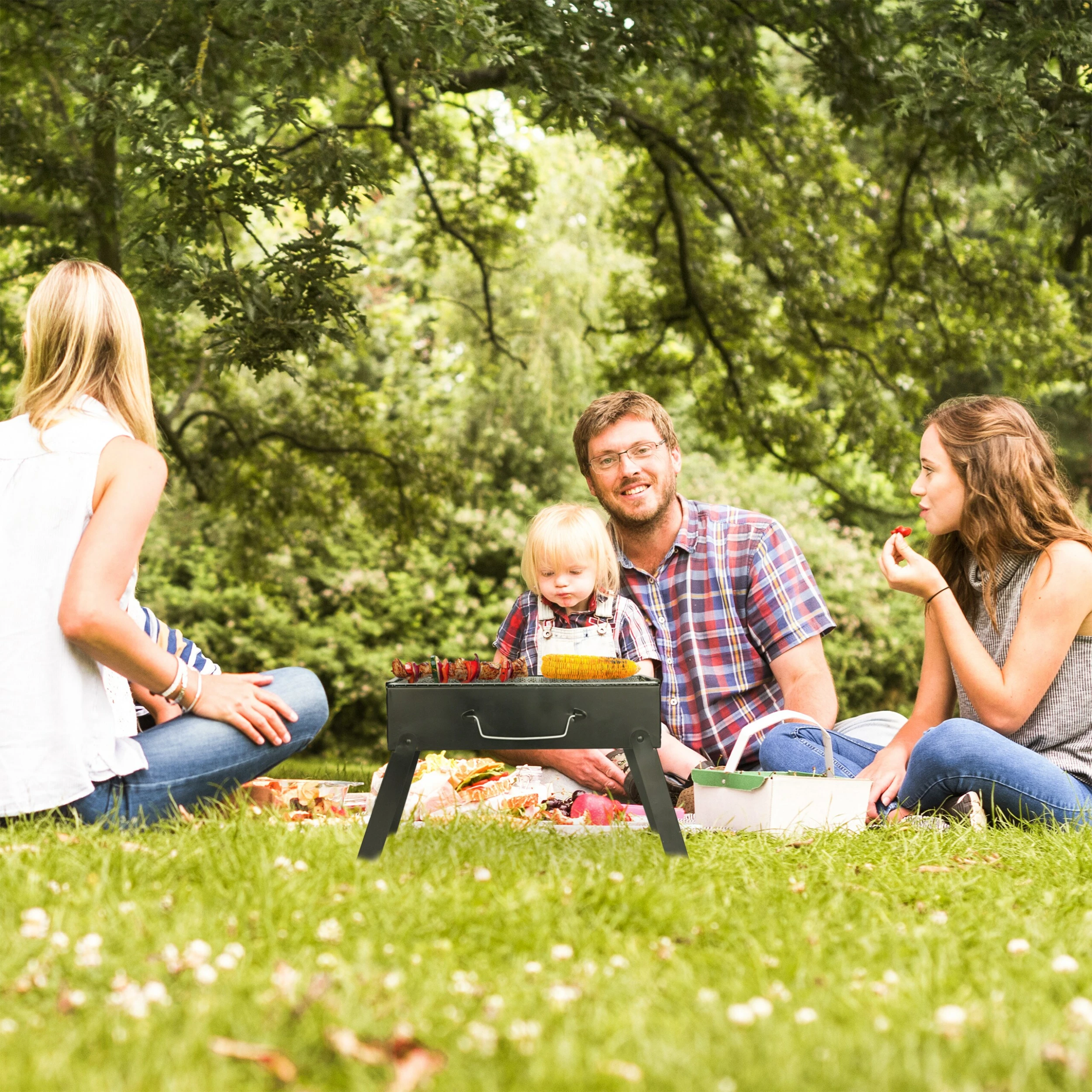 Ob beim Camping oder auf dem Festival, der tragbare Klappgrill bringt überall schnellen Grillgenuss.