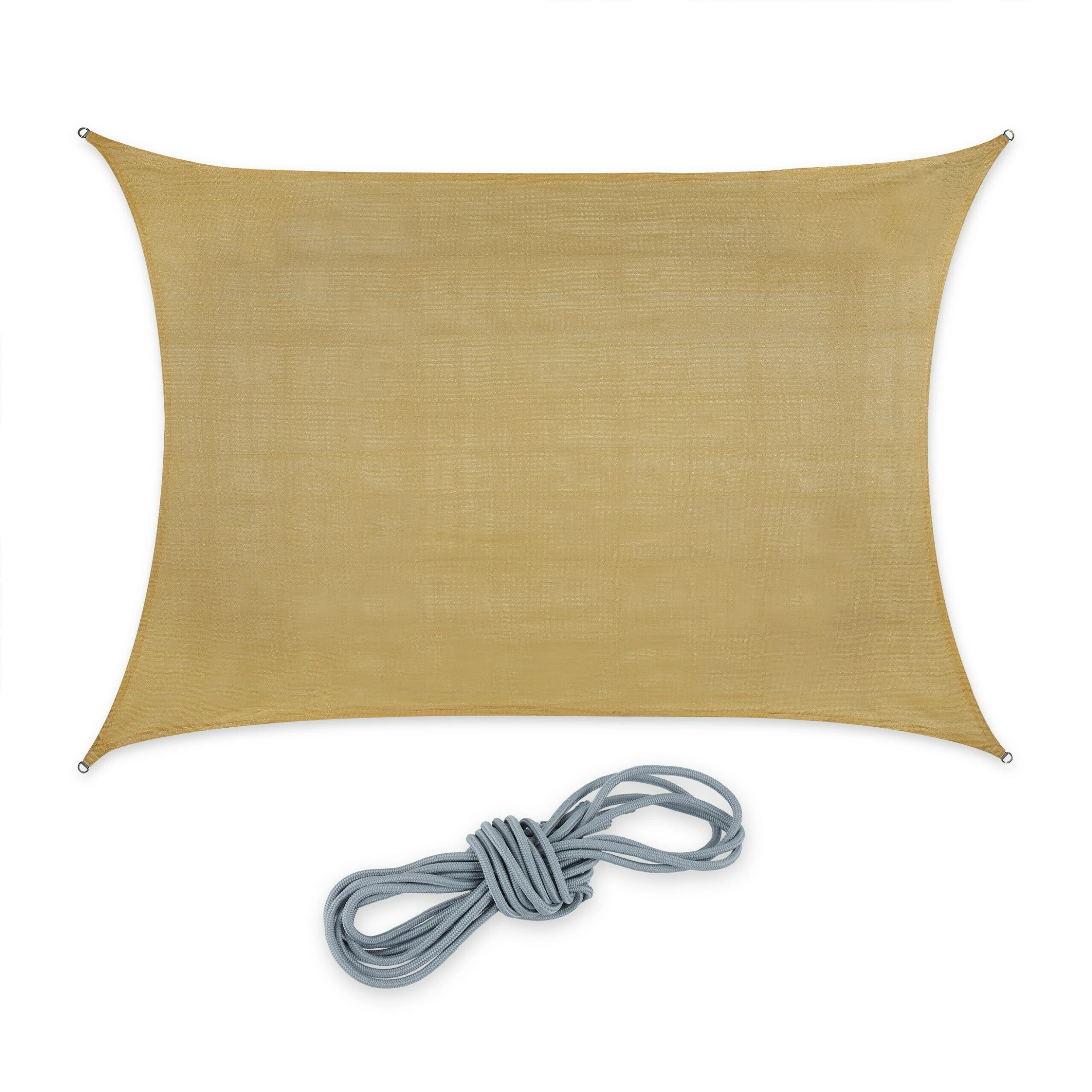 Das rechteckige Balkonsegel aus robustem HDPE-Gewebe spendet nicht nur großzügig Schatten, es bietet zugleich einen wirksamen UV-Schutz. Das sandfarbene Segel ist überdies witterungsbeständig, die Mesh-Struktur reduziert übermäßigen Hitzestau. Nutzen Sie das Sonnentuch als Sichtschutzsegel auf dem Balkon oder am Pool sowie als Schattenspender über Veranda und Terrasse oder dem Sandkasten. Das robuste Gartensegel wird mit den mitgelieferten Spannseilen an den 4 Haken befestigt.