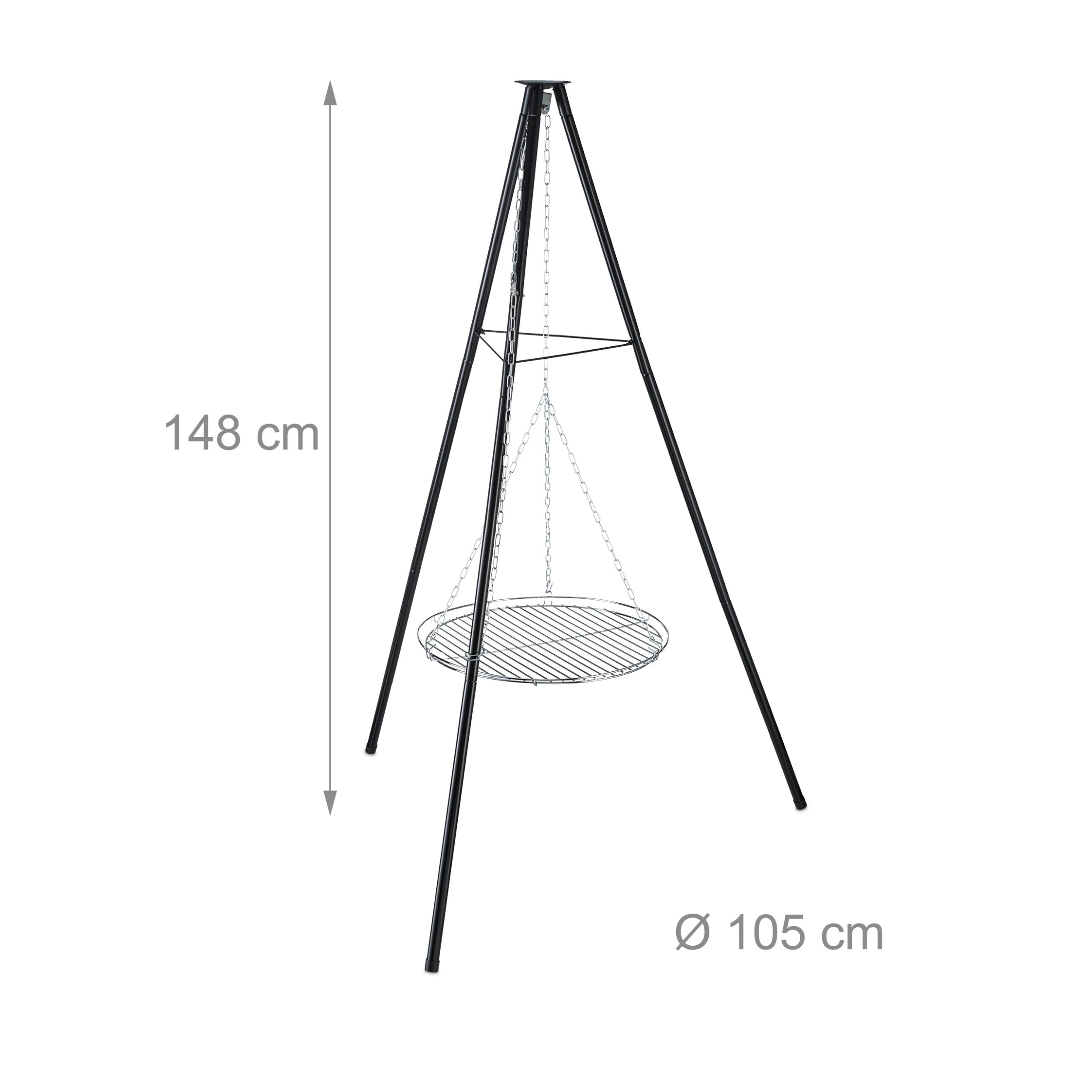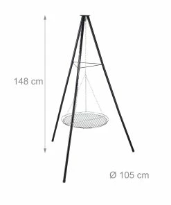 Gemütliche Abende um ein prasselndes Feuer werden mit diesem Dreibein Gestell abgerundet. Der praktische Grill mit Feuerschale ist ideal zum Zubereiten von Steaks, Würstchen und Grillgemüse im Garten oder beim Camping. Dank des großen Rosts verköstigen Sie problemlos 8 bis 10 Personen. Die lange Kette mit Seilzug ermöglicht ein effektives Grillen, ob bei hohen Flammen oder schwacher Glut. Der Galgengrill ist dank Steckrohre schnell aufgebaut und eignet sich ohne Feuerschale auch für Lagerfeuer.