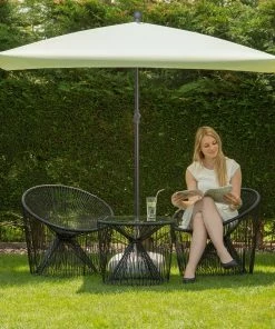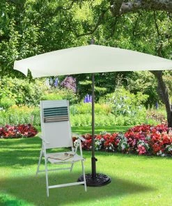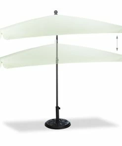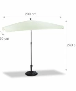 Der rechteckige Sonnenschirm mit einer Schirmgröße von 200 x 120 cm überzeugt durch sein klassisch schlichtes Design. Der Schirm kann im Garten, auf dem Balkon oder auf der Terrasse überzeugen. Bei Bedarf lässt sich der zweiteilige Mast des Schirms schnell auseinanderbauen, um einen einfachen Transport zu garantieren. Der Gartenschirm kann über einen Drehfeststeller in der Höhe verstellt werden und über einen Metallknicker geneigt werden, um den Schirm je nach Sonnenstand einzustellen.