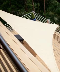 Das Sonnensegel besteht aus Polyester, ist witterungs-und UV-beständig sowie wasserabweisend und stabil.