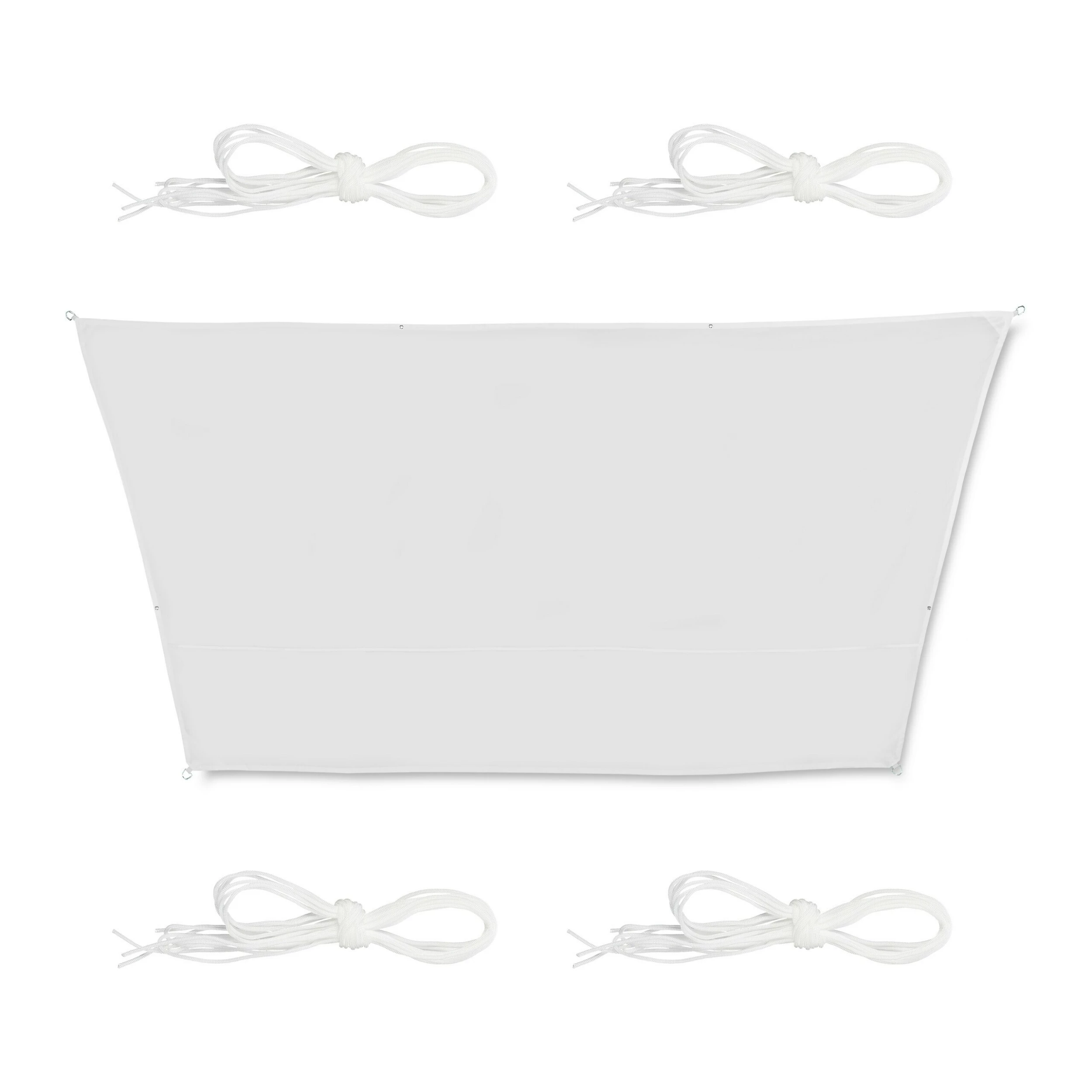 Das trapezförmige Balkonsegel aus reißfestem Polyester spendet nicht nur großzügig Schatten, es bietet zugleich einen wirksamen UV-Schutz. Das weiße Segel ist überdies wasserabweisend und witterungsbeständig. Nutzen Sie das Sonnentuch als Sichtschutzsegel auf dem Balkon oder am Pool sowie als Schattenspender über Veranda oder Terrasse. Das Gartensegel wird mit den mitgelieferten Spannseilen an den 4 Haken befestigt. Mit den Ösen an den Seiten kann das Sonnensegel zusätzlich gesichert werden.