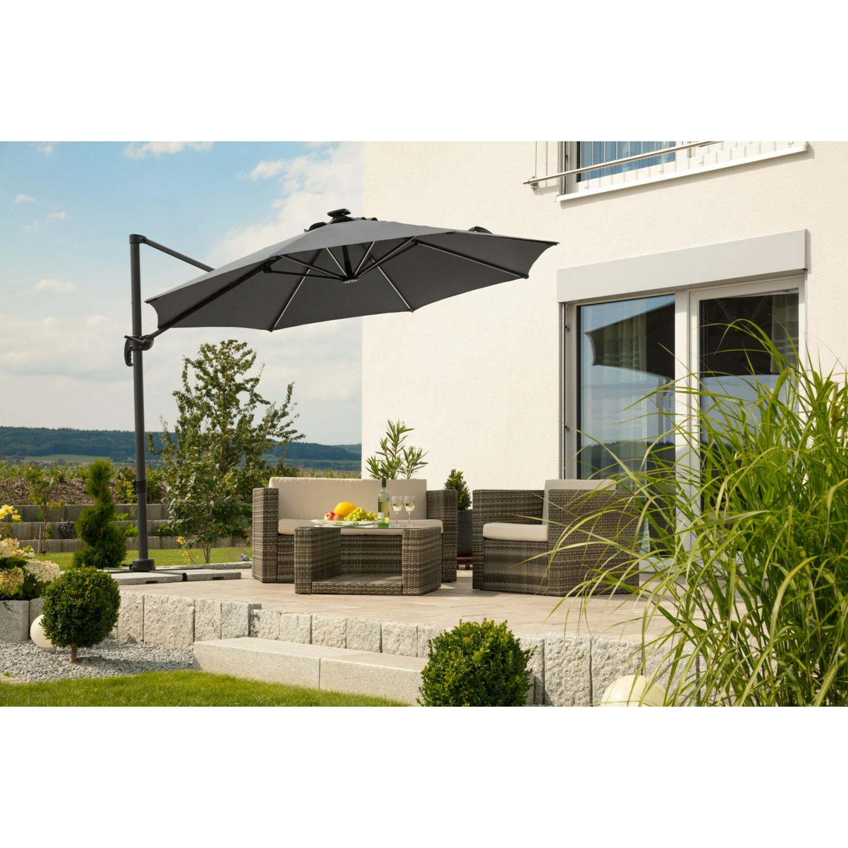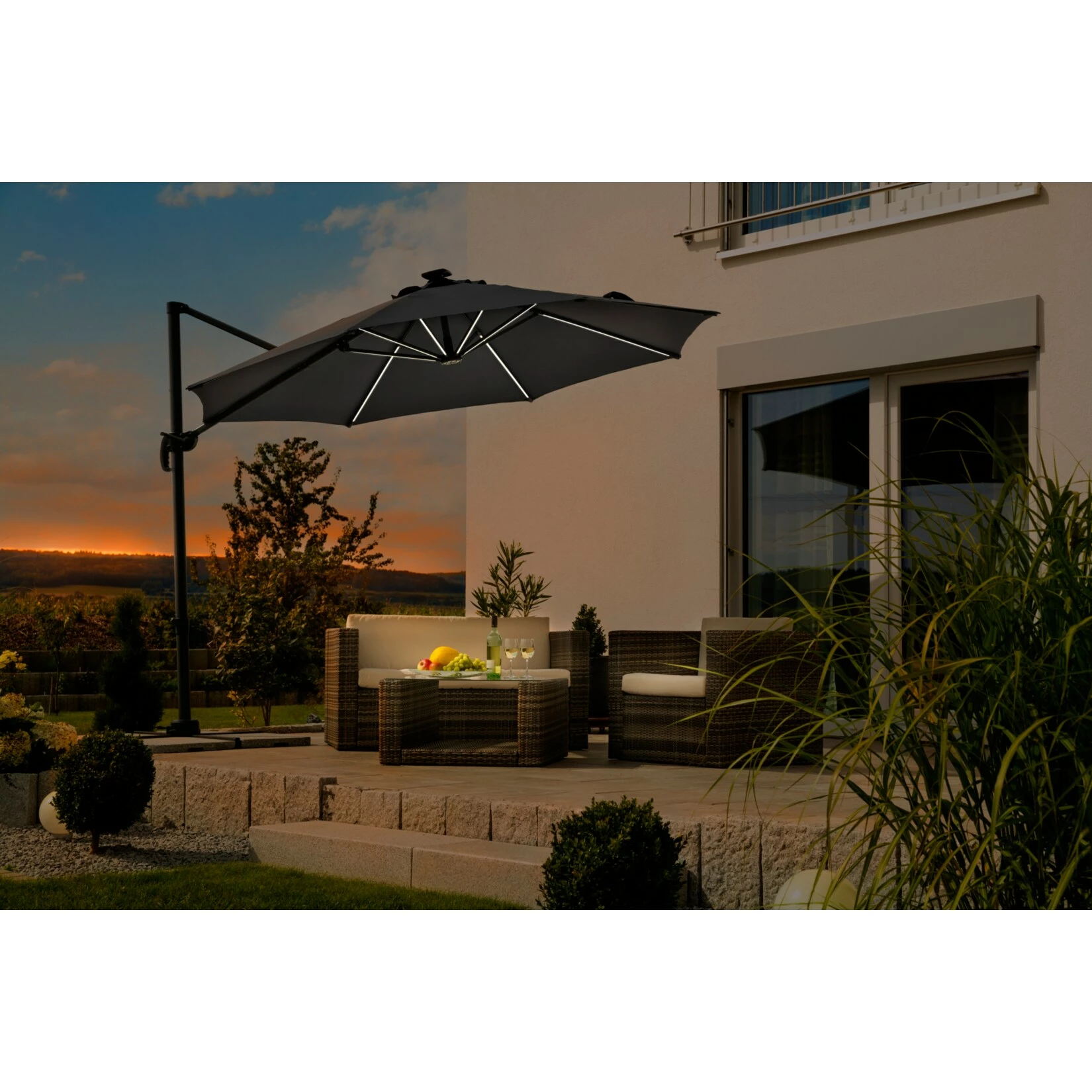 Unauffällig und elegant zugleich ist der Schneider Ampelschirm Rhodos Blacklight.