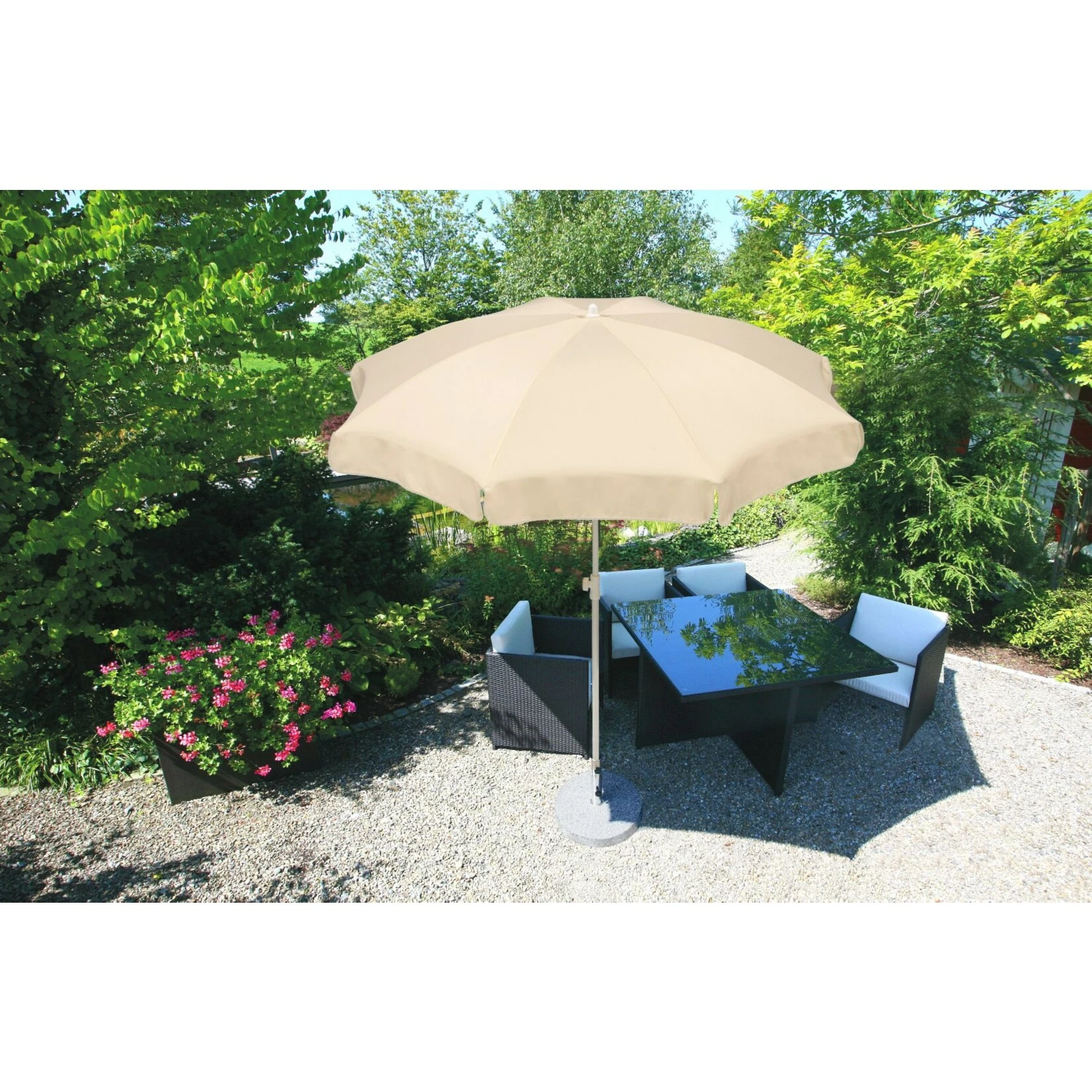 Wir empfehlen einen Schirmständer mit mind. 20 kg Gewicht!