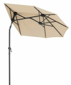 Mithilfe der integrierten Kurbel lässt sich der Schirm ohne großen Kraftaufwand Öffnen und Schließen. Durch die zwei Metall-Knicker (um 90° versetzte Knickrichtung) kann der Schirm flexibel geneigt und geknickt werden und spendet dadurch bei unterschiedlicher Sonneneinstrahlung opimalen Schatten.