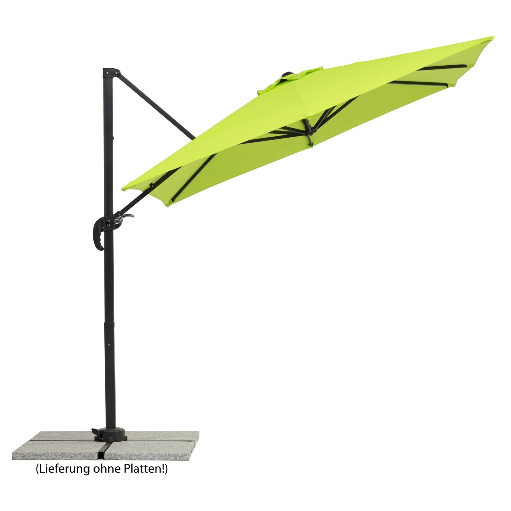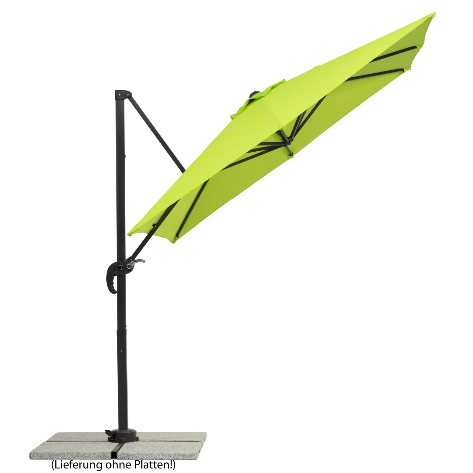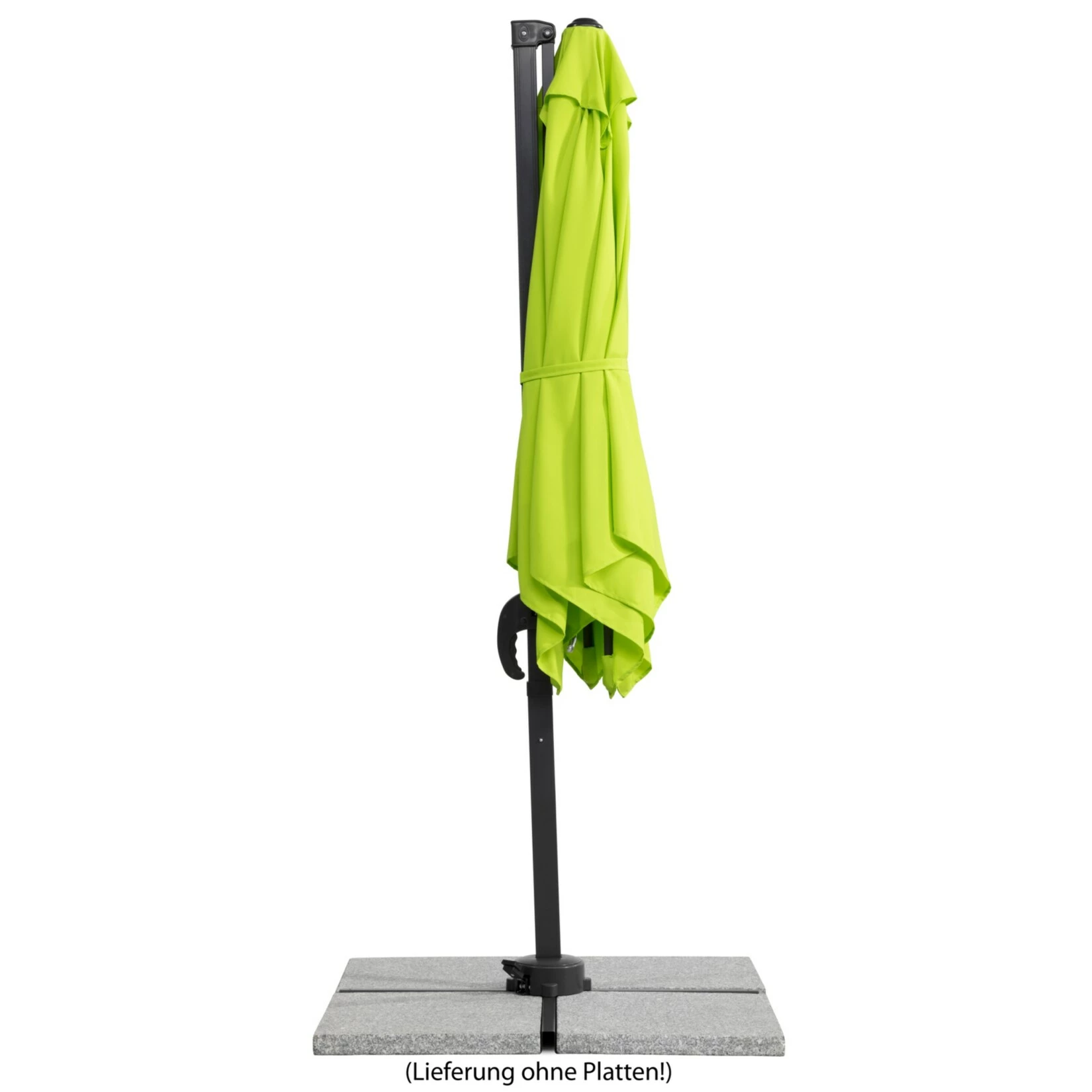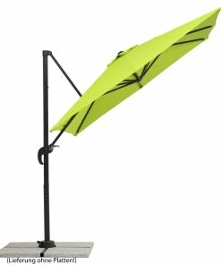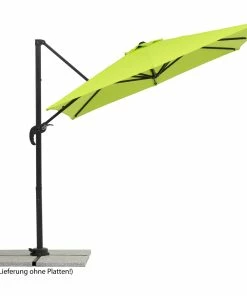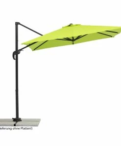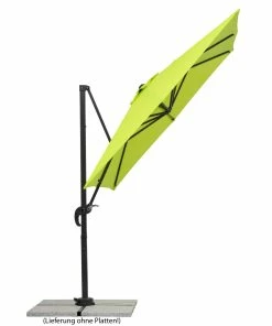 Im Lieferumfang enthalten ist ein Plattenständer für 4 Wegeplatten in der Größe 50 x 50 x 5 cm (Platten nicht enthalten), welcher dem Schirm einen sehr stabilen Halt gibt.