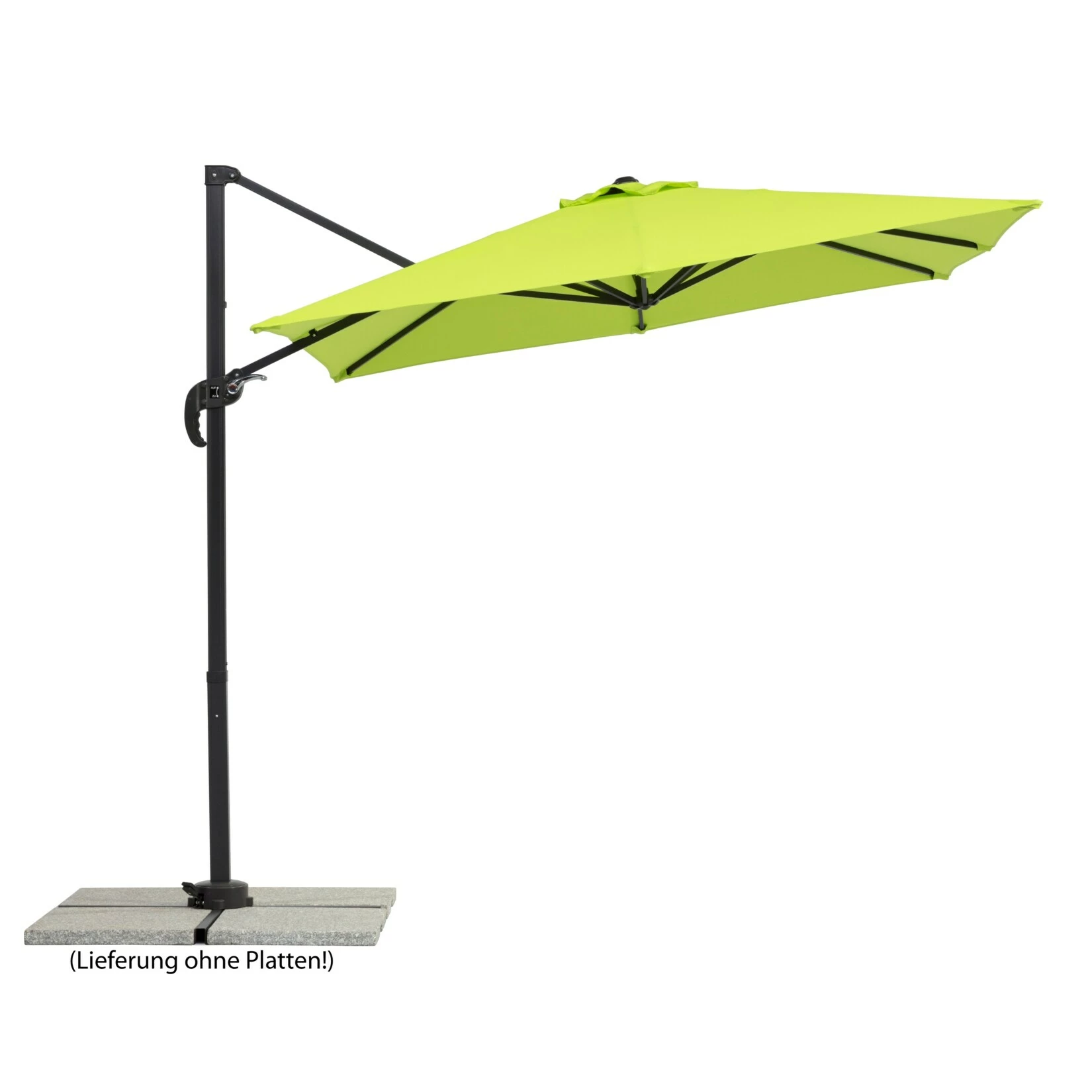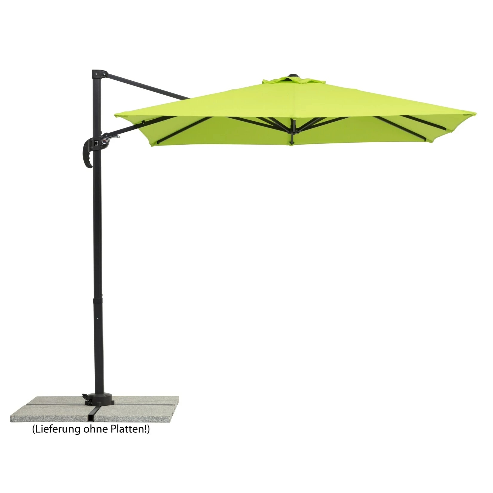 Dieser Sonnenschirm ist ein quadratischer Ampelschirm in der Größe 230 x 230 cm.