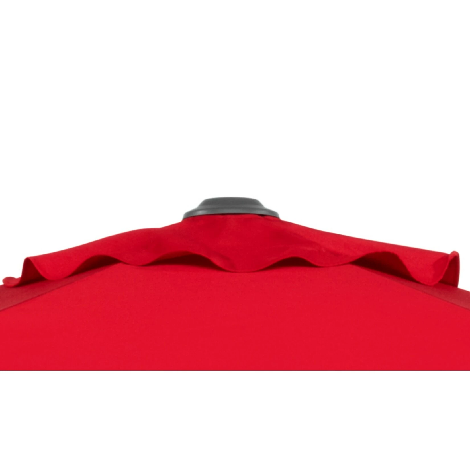 Der Sonnenschirm Sevilla hat ein anthrazitgrau pulverbeschichtetes Stahl-Gestell mit Push-up-Öffnung, wodurch sich der Schirm einfach Öffnen und Schließen lässt. Die Stärke der Streben beträgt ca. 12 x 18 mm.