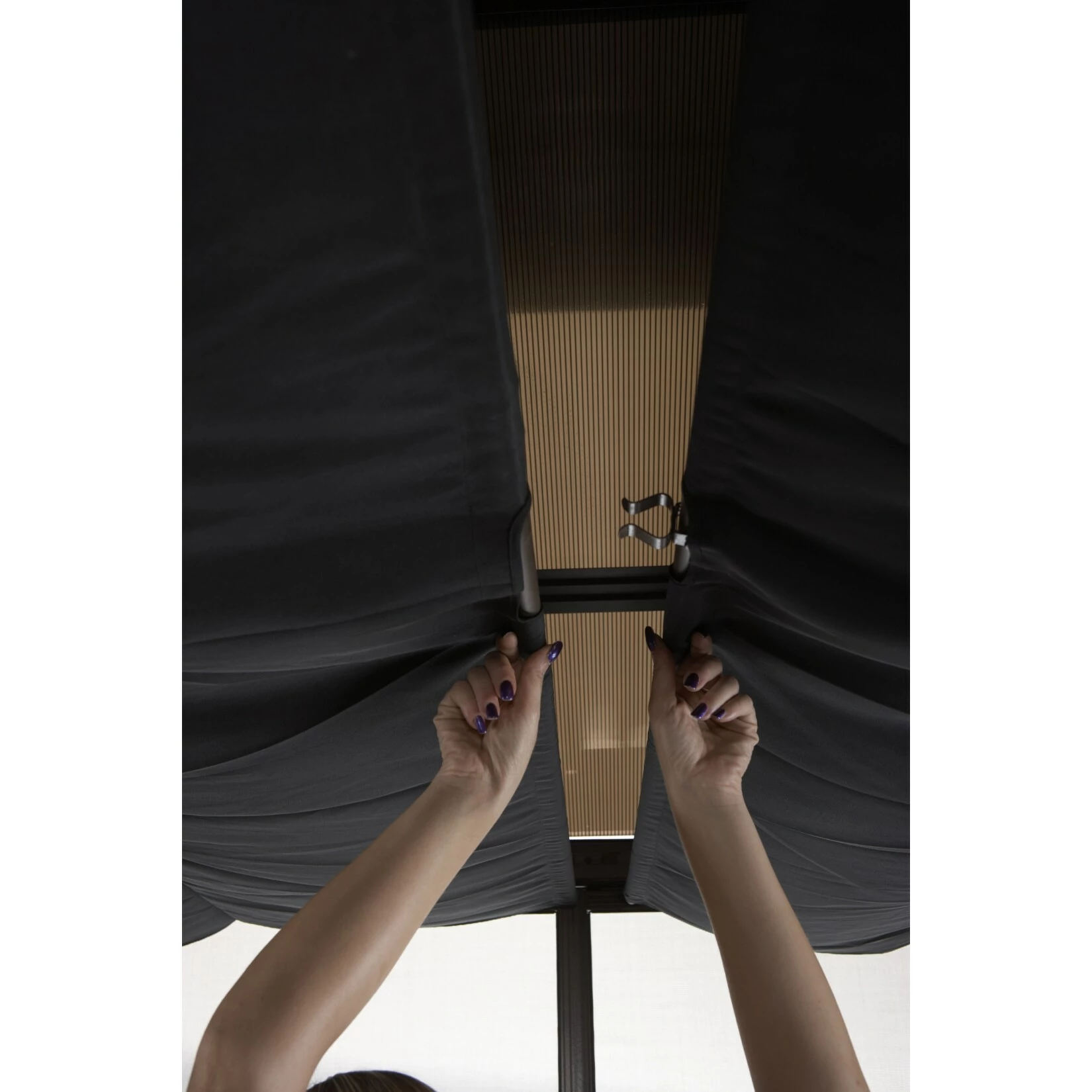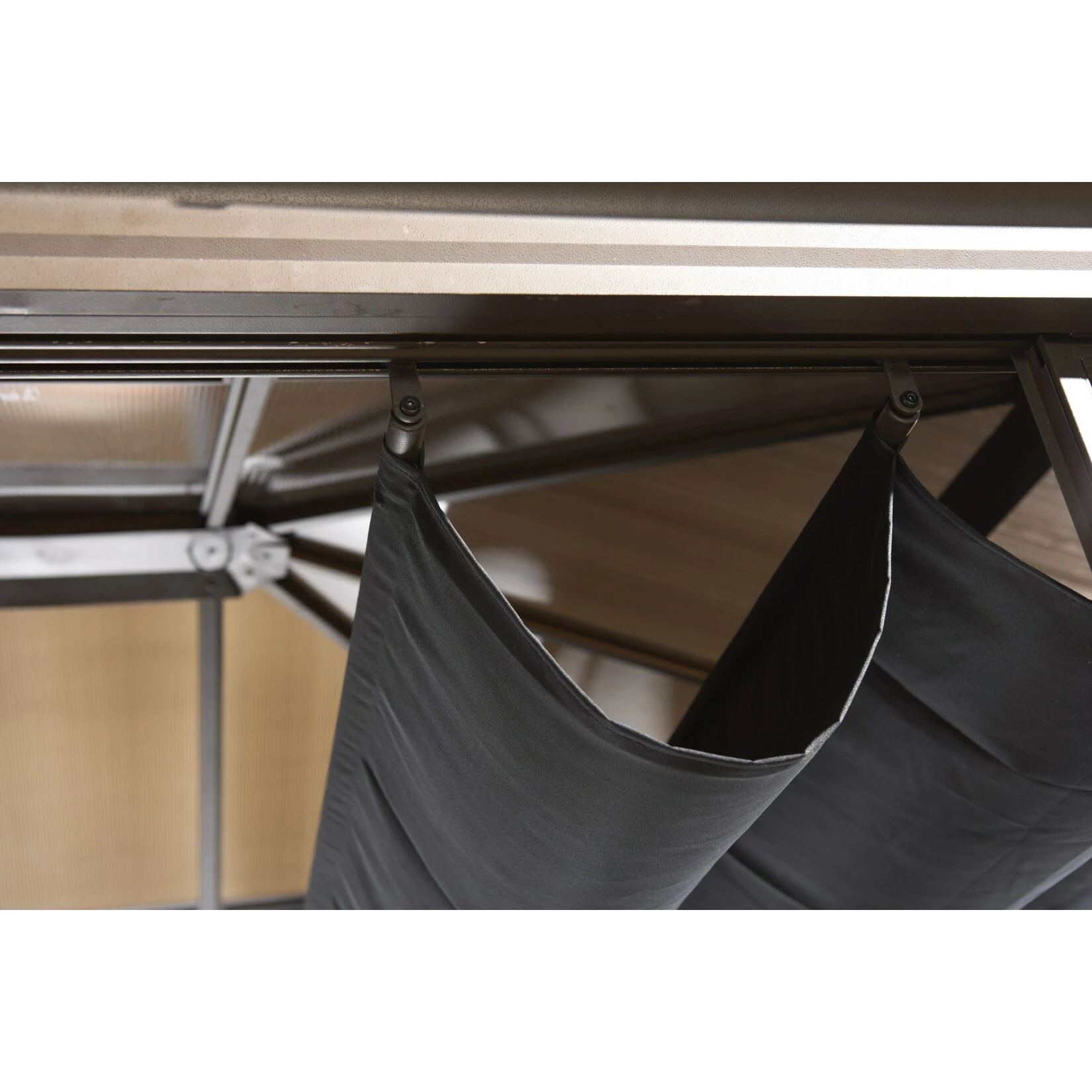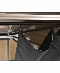 Das gleiche gilt für die massive Konstruktion aus resistentem, pulverbeschichtetem Aluminium (Pfostenstärke 7,6 cm). Selbst die Schrauben bestehen aus rostfreiem Edelstahl. Der Pavillon muss daher im Winter nicht abgebaut werden.