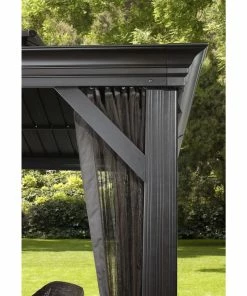 Das gleiche gilt für die massive Konstruktion aus resistentem, pulverbeschichtetem Aluminium (Pfostenstärke 12cm). Selbst die Schrauben bestehen aus rostfreiem Edelstahl. Der Pavillon muss daher im Winter nicht abgebaut werden.
