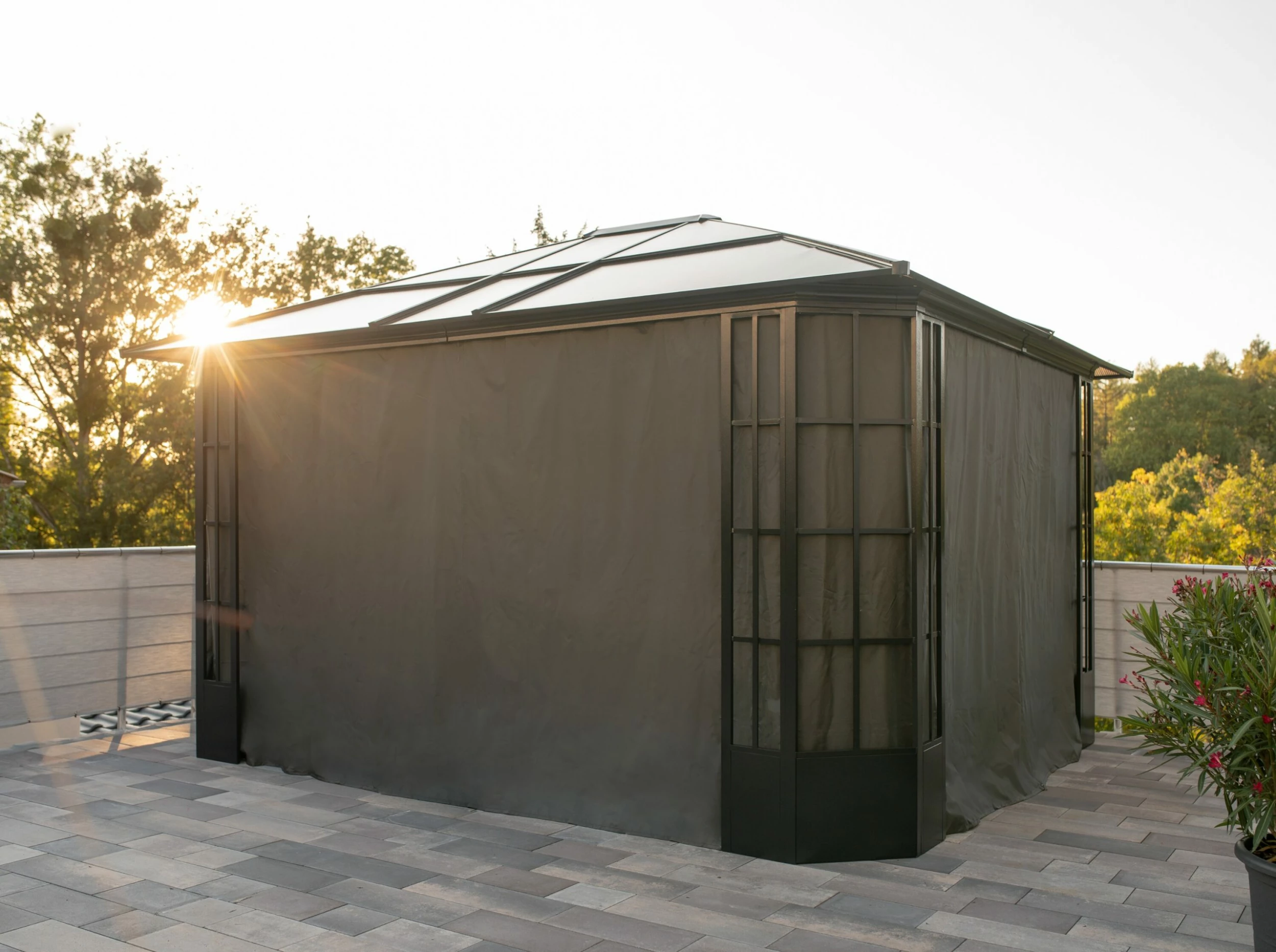 Sojag Pavillon Savino 12×14 Vorhänge Seitenteile Dunkelgrau