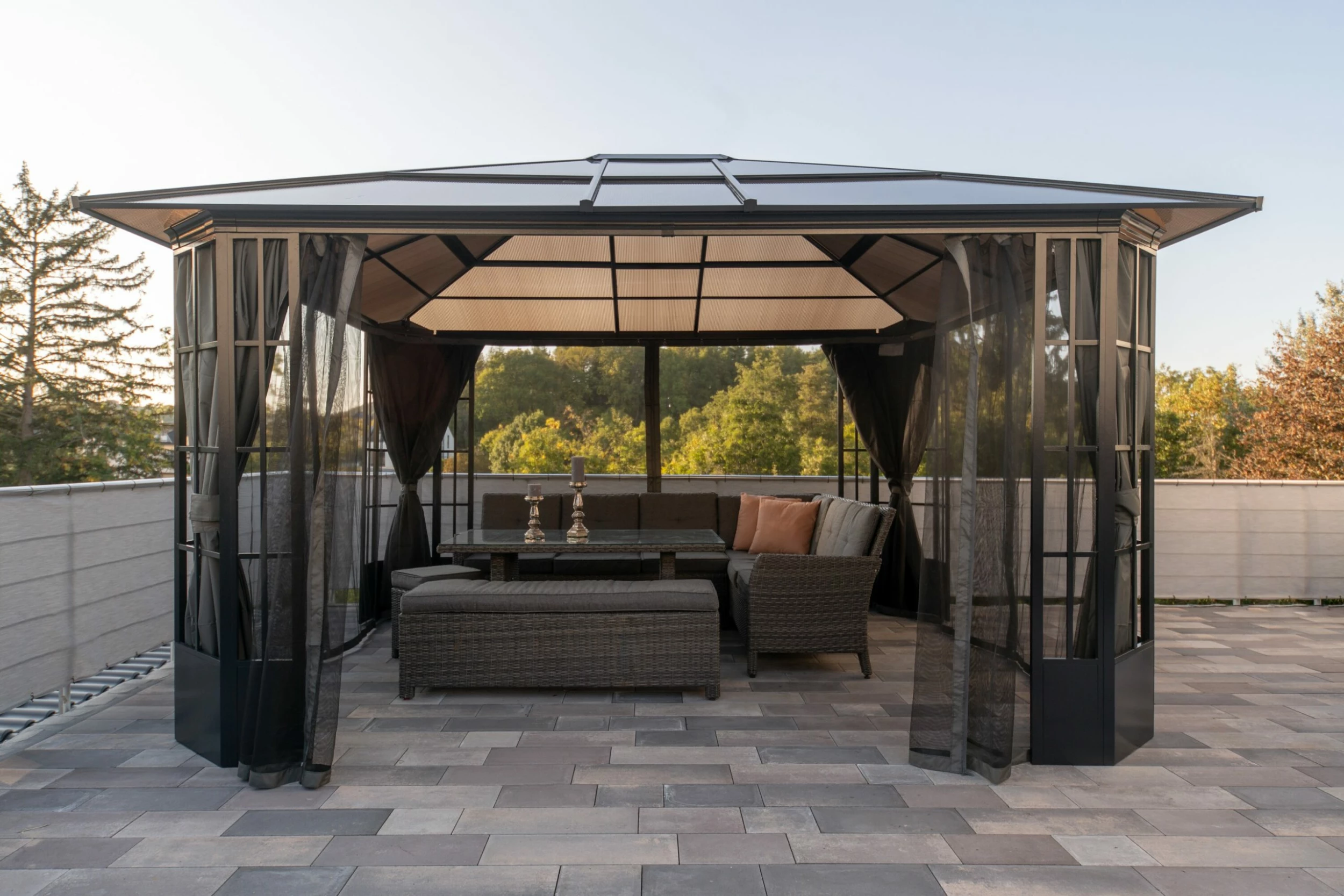 Modern, langlebig und eine tolle Optik sind Merkmale der neuen Aluminiumpavillons vom größten und bekanntesten kanadischen Pavillon-Produzenten SOJAG.