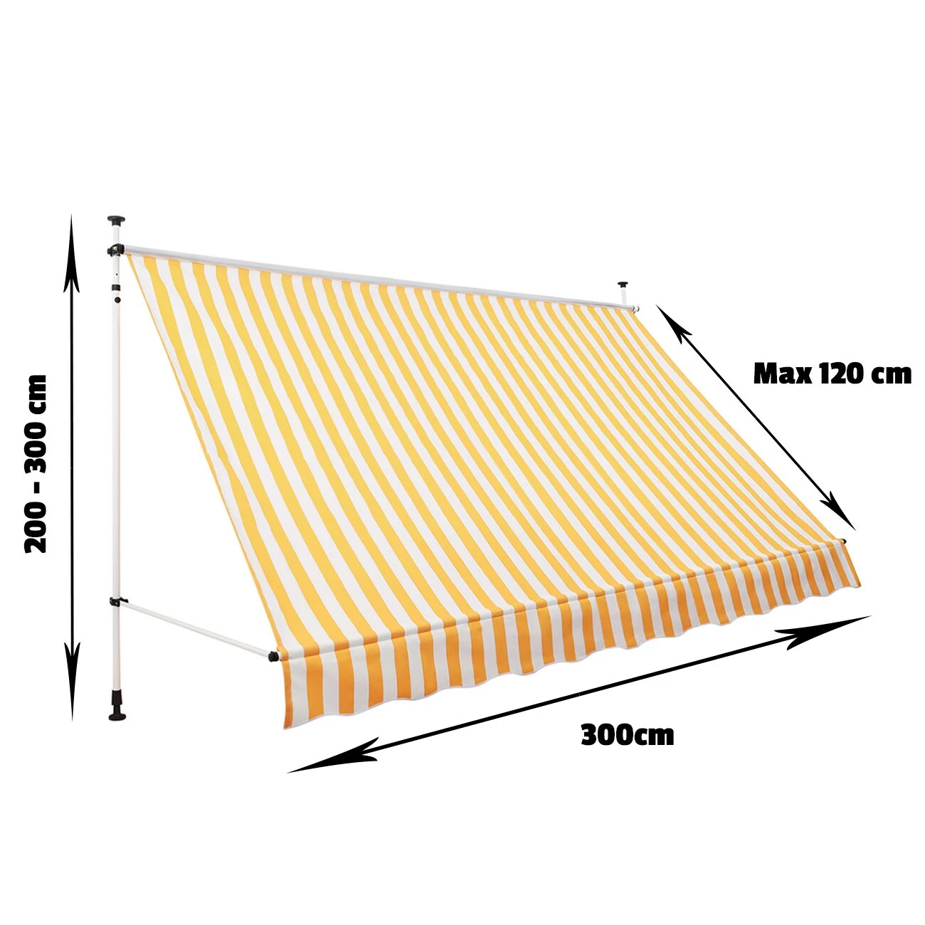 Strattore Klemmmarkise / Balkonmarkise Sonnenschutz 300 x 120 cm – Gelb/Weiß