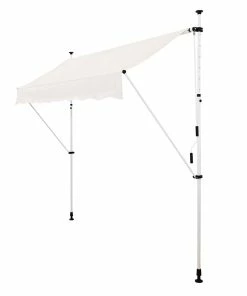 Im Vergleich mit fest installierten Markisen sichern Sie sich mit diesem Modell mehrere Vorteile. Sie bringen diese Markise im Handumdrehen an. Der wesentliche Schritt besteht darin, die beiden Teleskopstangen zwischen Boden und oberen Befestigungspunkten anzubringen. Die Länge der Teleskopstangen passen Sie mit minimalem Aufwand an. Nach dem Lockern der Schrauben sind sie problemlos aus- und einziehbar. Anschließend stellen Sie den Neigungswinkel ein, indem Sie die beiden Ausfallarme entsprechend verlängern oder verkürzen. Diese einfache Montage und Bedienung sind nennenswerte Pluspunkte. Sie entgehen unnötiger Arbeit, zudem beschädigen Sie Ihr Gebäude nicht. Darüber hinaus setzen Sie diese Klemmmarkise vielseitig ein. So können Sie diese im Campingurlaub für Ihr Wohnmobil nutzen, nach der Heimkehr wieder als Terrassen- oder Balkonmarkise.