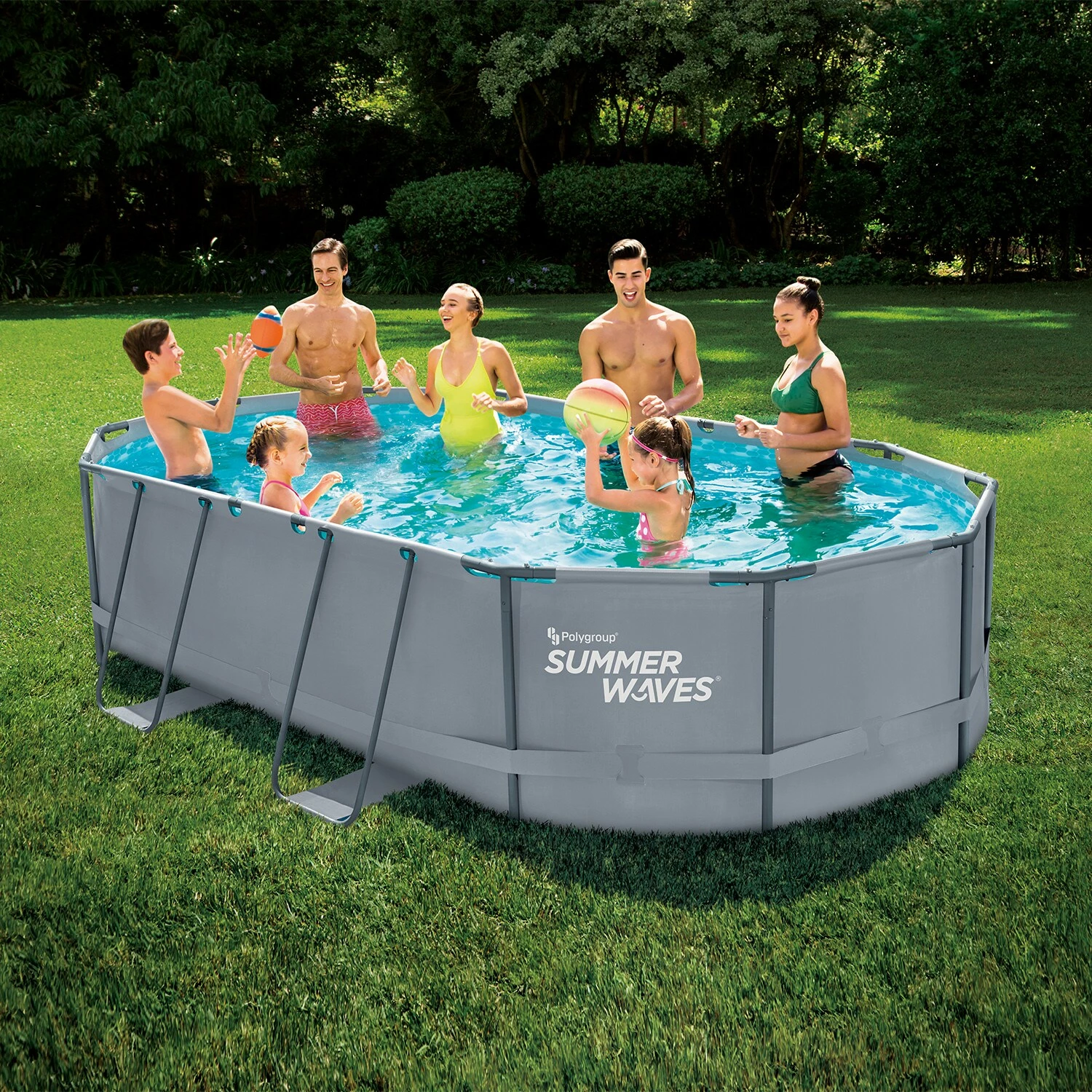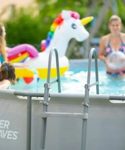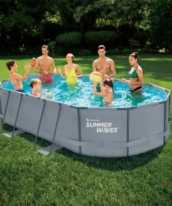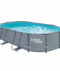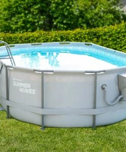 Dieser Summer Waves Pool ist ein oberirdischer, runder Rahmen-Pool in schlichtem Anthrazit.