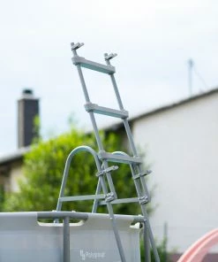 Die Rahmenrohre des Pools werden im sogenannten Snap-In-Verfahren aufgebaut, was einen einfachen und schnellen Aufbau ermöglicht.