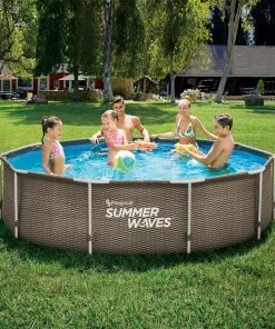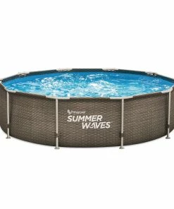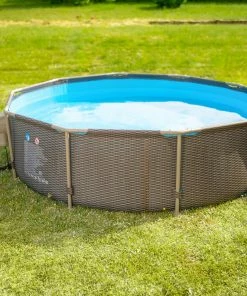 Dieser Summer Waves Pool ist ein oberirdischer, runder Rahmen-Pool in modernem Rattan braun.