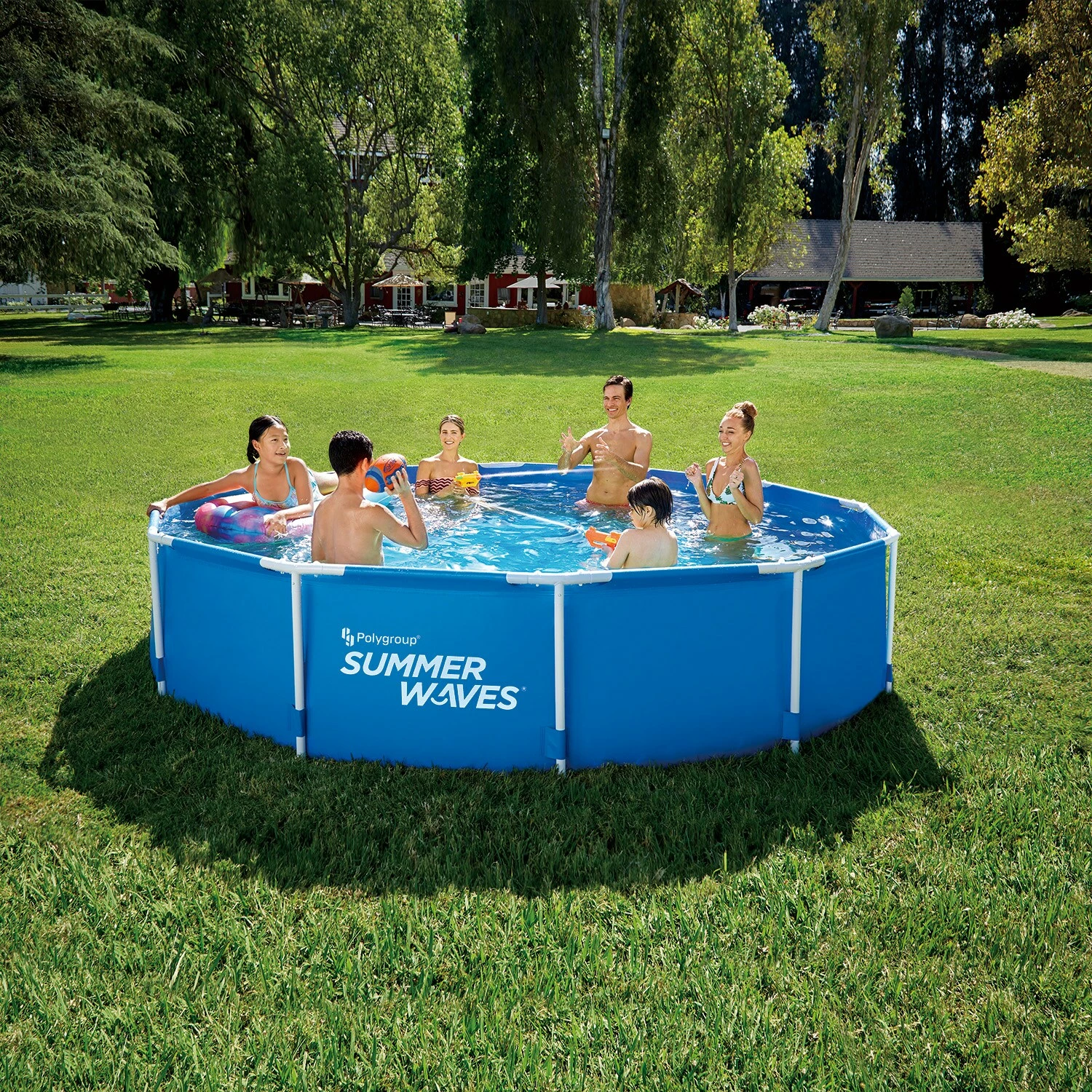 Dieser Summer Waves Pool ist ein oberirdischer, runder Rahmen-Pool in blau.