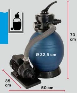 Das System kann schnell zusammengebaut und installiert werden. Die Reinigung des Sandfilters ist einfach. Die Pumpe arbeitet im Zulaufbetrieb. Die Einlassöffnung der Pumpe sollte mindestens 30 cm unterhalb des Wasserspiegels vom Schwimmbecken liegen.
