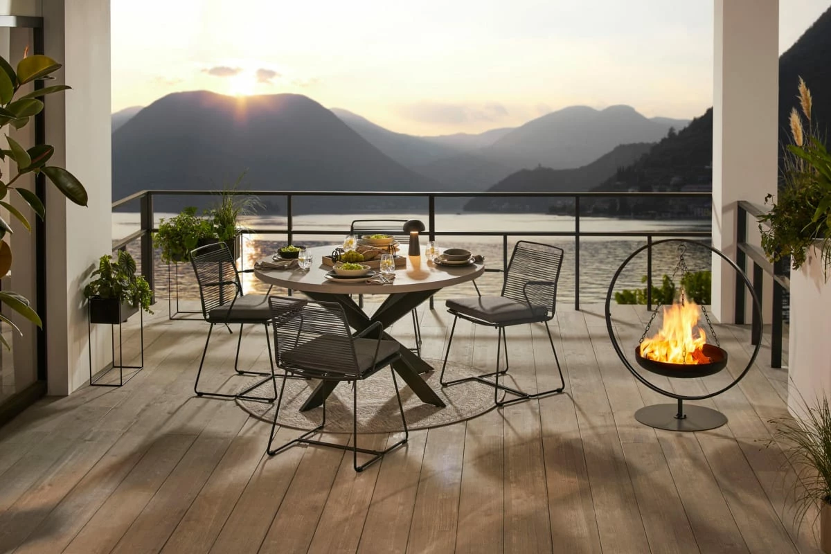 - Der außergewönliche Look macht die frei hängende Feuerstelle zu einem tollen Blickfang