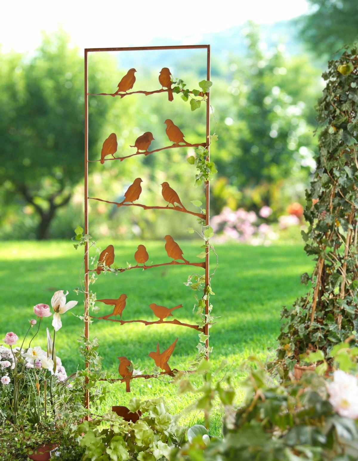 - Der Gartenstecker in Rost-Optik ist dekorativ und dient zusätzlich als Rankgitter
