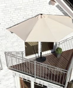 - Mit diesem halbrunden Sonnenschirm sorgen Sie auch auf kleineren Balkonen oder Terrassen für ausreichend Sonnenschutz