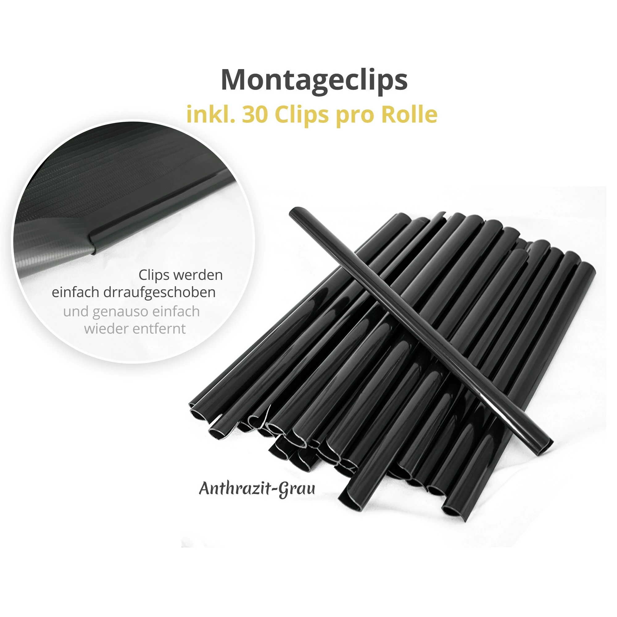 Inklusive 30 Befestigungsclips pro jede 35m Rolle