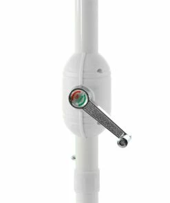 Der 2-teilige Schirmstock und das Gestänge sind aus robustem, weiß lackiertem Stahl.