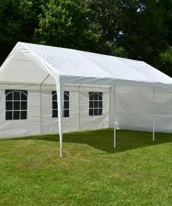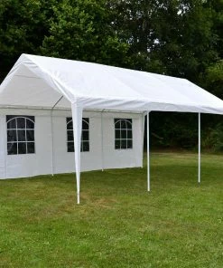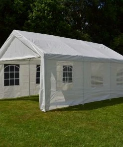 Die Lieferung erfolgt inkl. der Seitenteile zum KOMPLETTEN verschließen. Bei starkem Wind können zusätzlich die Abspannseile eingesetzt werden. Schwere Qualität macht das Zelt robust und langlebig. Somit findet es übergangsweise auch als Leichtbauzelt oder Faltgarage für Autos, Motorräder und Fahrräder Verwendung.