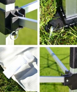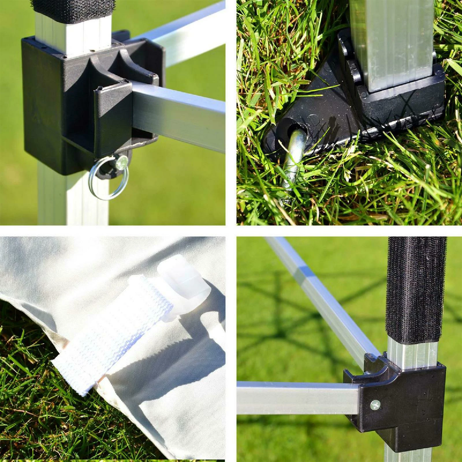 Für einen optimalen Wetterschutz sorgen das regendichte Dach, die wasserdichte Dachplane aus 270 g/m² Polyester Material, eine zusätzliche PVC-Beschichtung und 4 Seitenteile mit Fenster (PE 180 g/m² mit Polyamid beschichtet). Dieses Faltzelt schützt Sie also bei einer Feier oder auf dem Markt vor Sonne und Regen und hält bei korrekter Montage und ordnungsgemäßer Abspannung auch so manchem Windstoß stand.