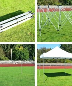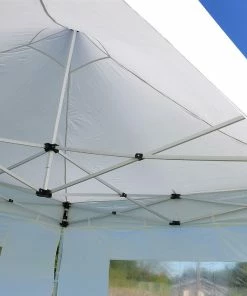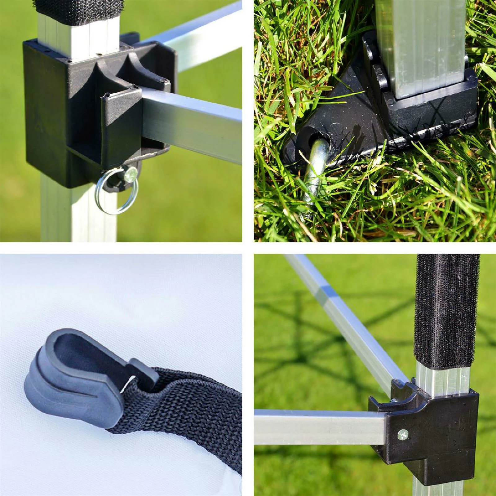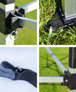 Für einen optimalen Wetterschutz sorgen das regendichte Dach, die wasserdichte Dachplane aus 270 g/m² Polyester Material, eine zusätzliche PVC-Beschichtung und 4 Seitenteile mit Fenster (PE 180 g/m² mit Polyamid beschichtet). Dieses Faltzelt schützt Sie also bei einer Feier oder auf dem Markt vor Sonne und Regen und hält bei korrekter Montage und ordnungsgemäßer Abspannung auch so manchem Windstoß stand.