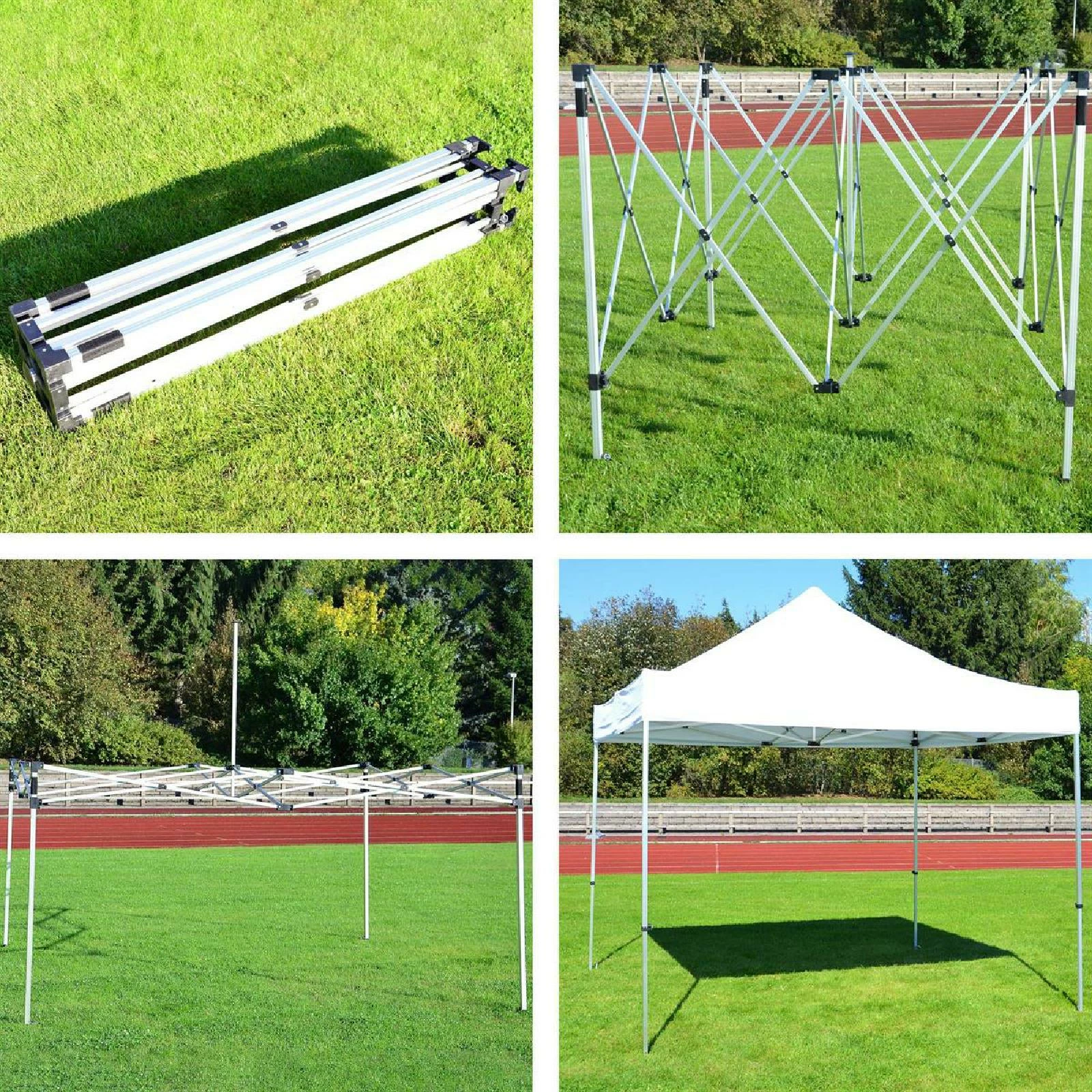 Ihr neuer Faltpavillon, ideal für alle Feste und Veranstaltungen. Ob im Garten, bei der Strandparty, beim Picknick, zum Flohmarkt oder beim Betriebsfest. Der Abbau gestaltet sich ebenso einfach wie der Aufbau. Nach Gebrauch des Faltpavillons lässt sich dieser bequem in der praktischen Tragetasche verstauen. Der Klapp Pavillon ist dank dem Falt-Mechanismus (Regenschirm Technik – Scherenhebelsystem) in wenigen Minuten einsatzbereit. Auch können die Standbeine / Teleskopbeine dreifach in der Höhe verstellt werden.