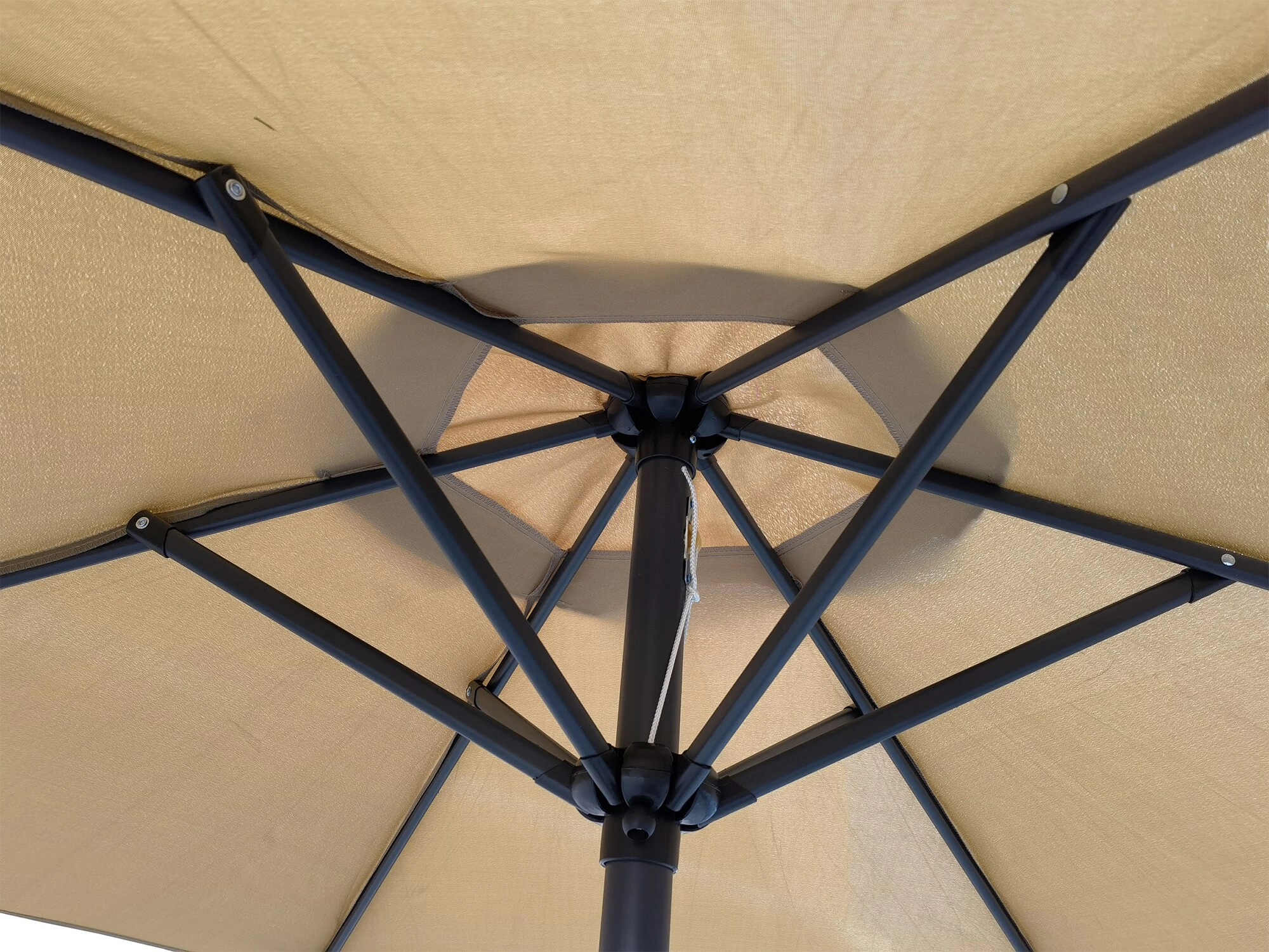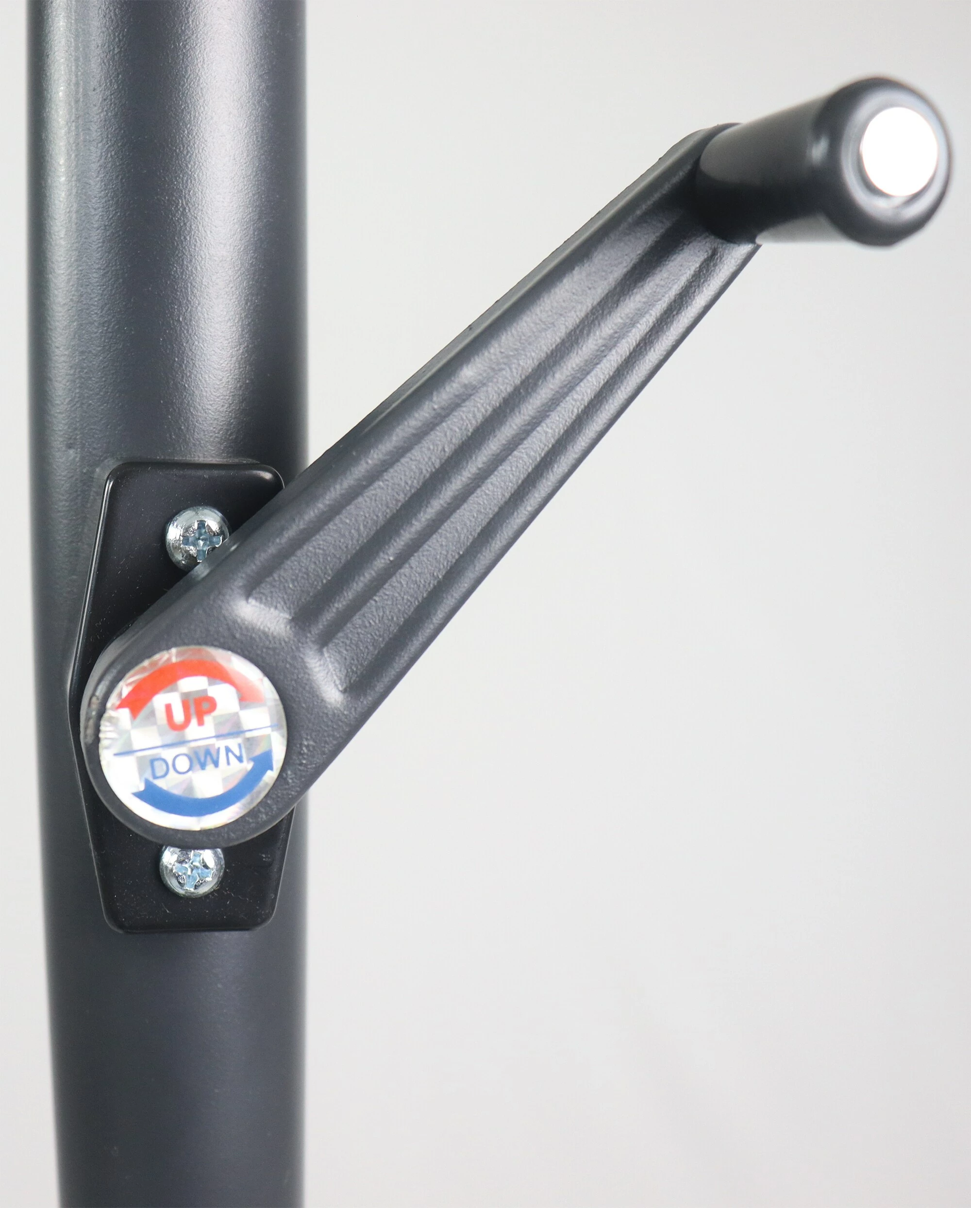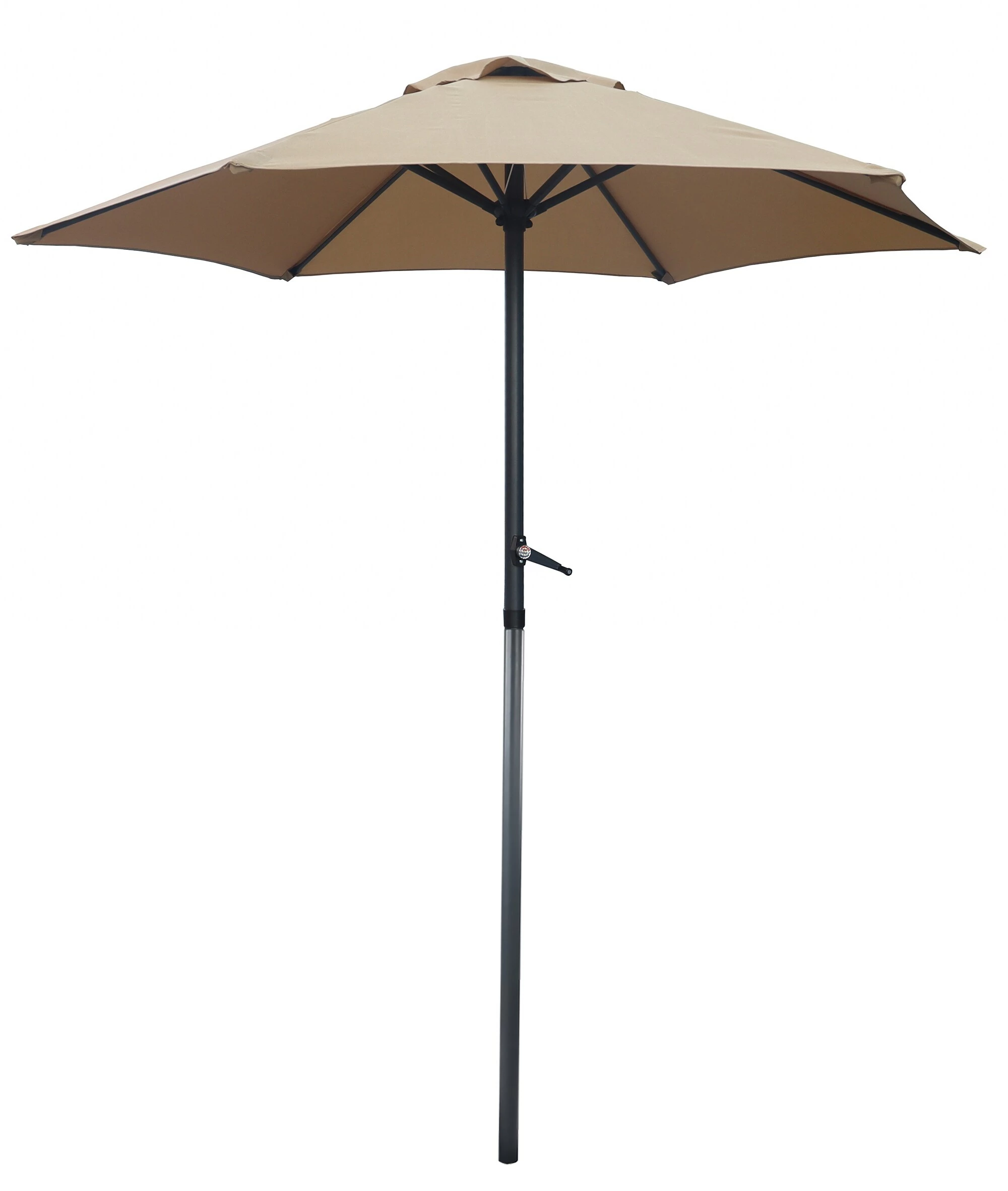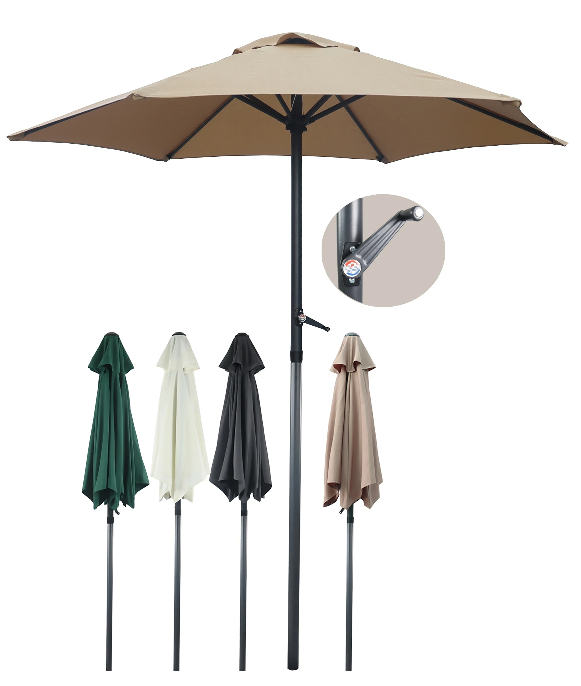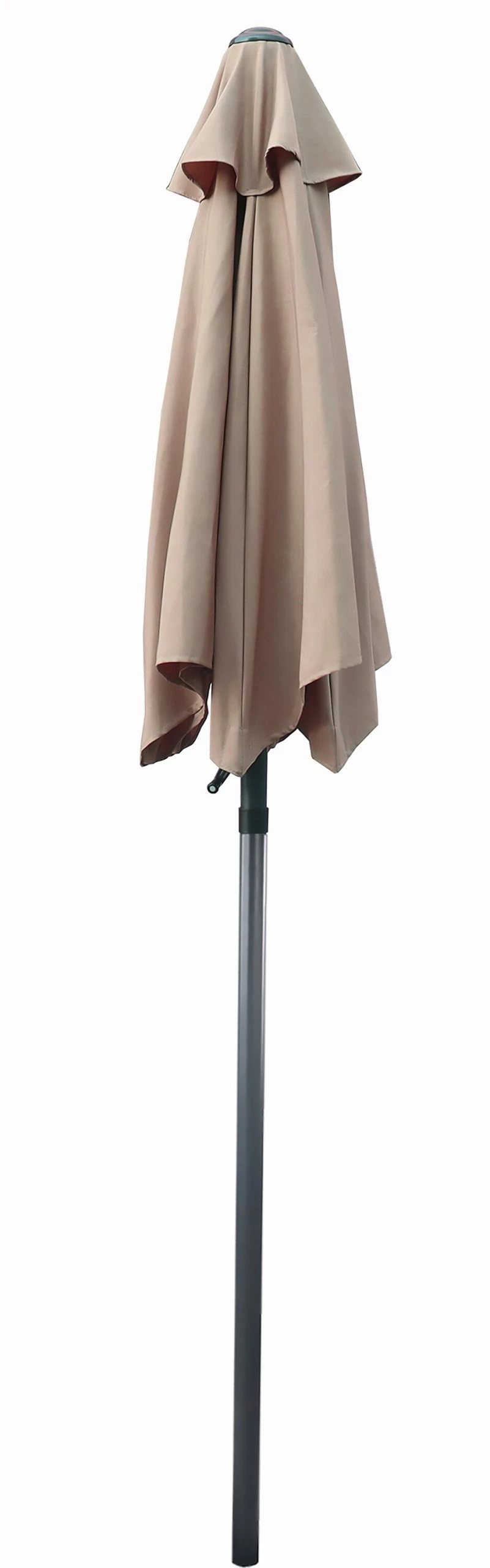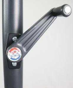 Die Stange ist höhenverstellbar und für einen platzsparenden Transport in der Mitte teilbar. Die Kurbel ermöglicht ein bequemes öffenen und schließen des Sonnenschirms.
