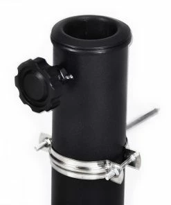 Das solide Stahlrohr (Ø ca. 5,5cm) ist rostfrei und mit einer Feststellschraube inkl. Reduzierring für Stamm Ø / Mast Ø: 4,9 und 4,1 cm versehen. Damit kann der Schirmstock sicher im Rohr fixiert werden.