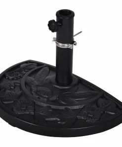 Halbrunder Schirmständer aus Polyresin in eleganter Gussoptik, schwarz lackiert, mit Stahlrohr. Für Halbschirme bis zu einem Durchmesser von 3 Metern geeignet – nicht für Ampelschirme.