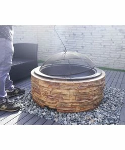Die Westmann Feuerstelle ist ein ganz besonderer Hingucker für Ihren Außenbereich: Er besticht vor allem durch seine in Naturtönen gehaltene Steinoptik aus Magnesiumoxid. Die schwarze Feuerschale wiederum besteht aus besonders stabilem, langlebigem und pulverbeschichtetem Aluminium. Die mitgelieferte Funkenschutzhaube sorgt für zusätzliche Sicherheit.